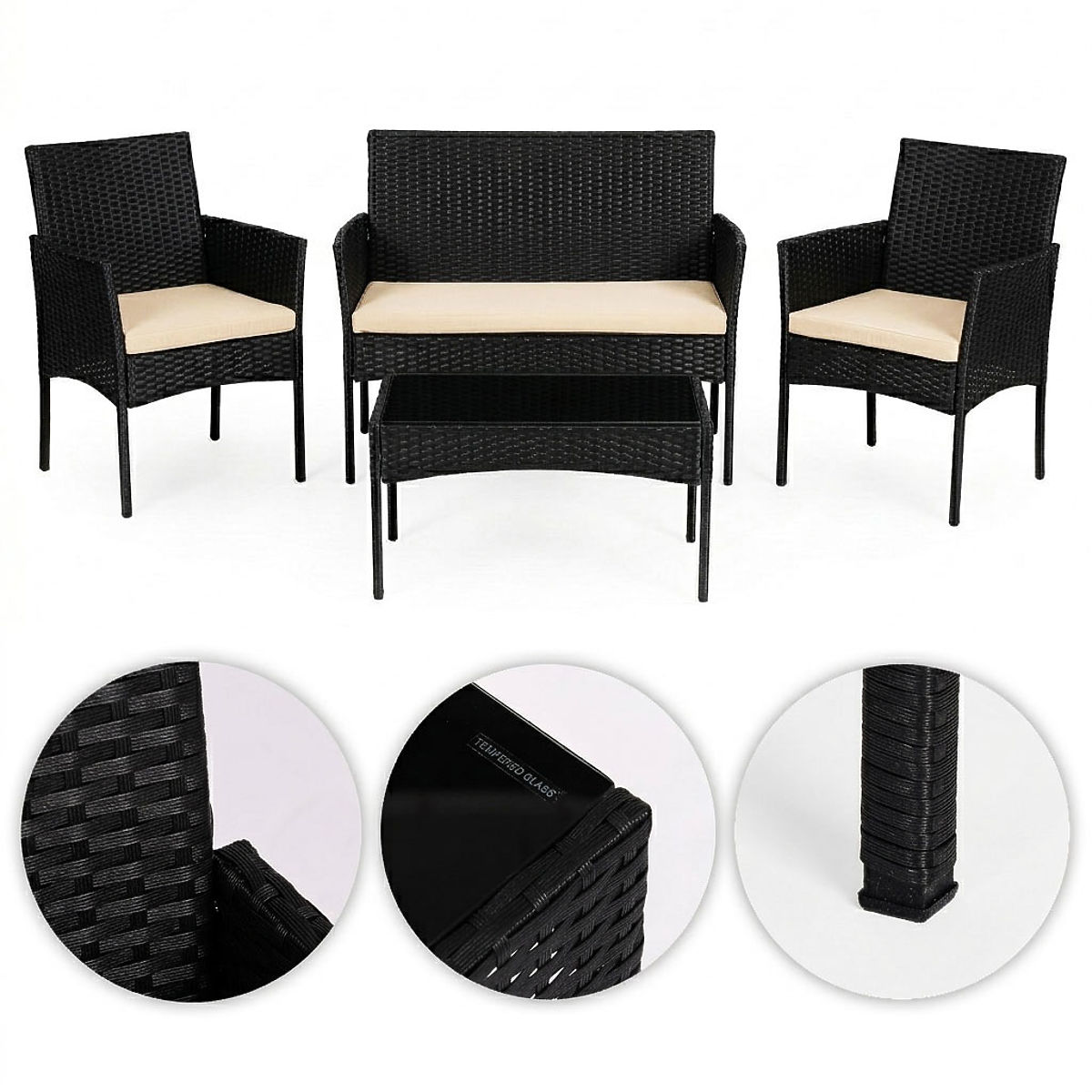 Lukahome.co.uk » Garden furniture / Garden sets / Garden Furniture Set from Technorattan Bench Table Chairs Black MultiGarden