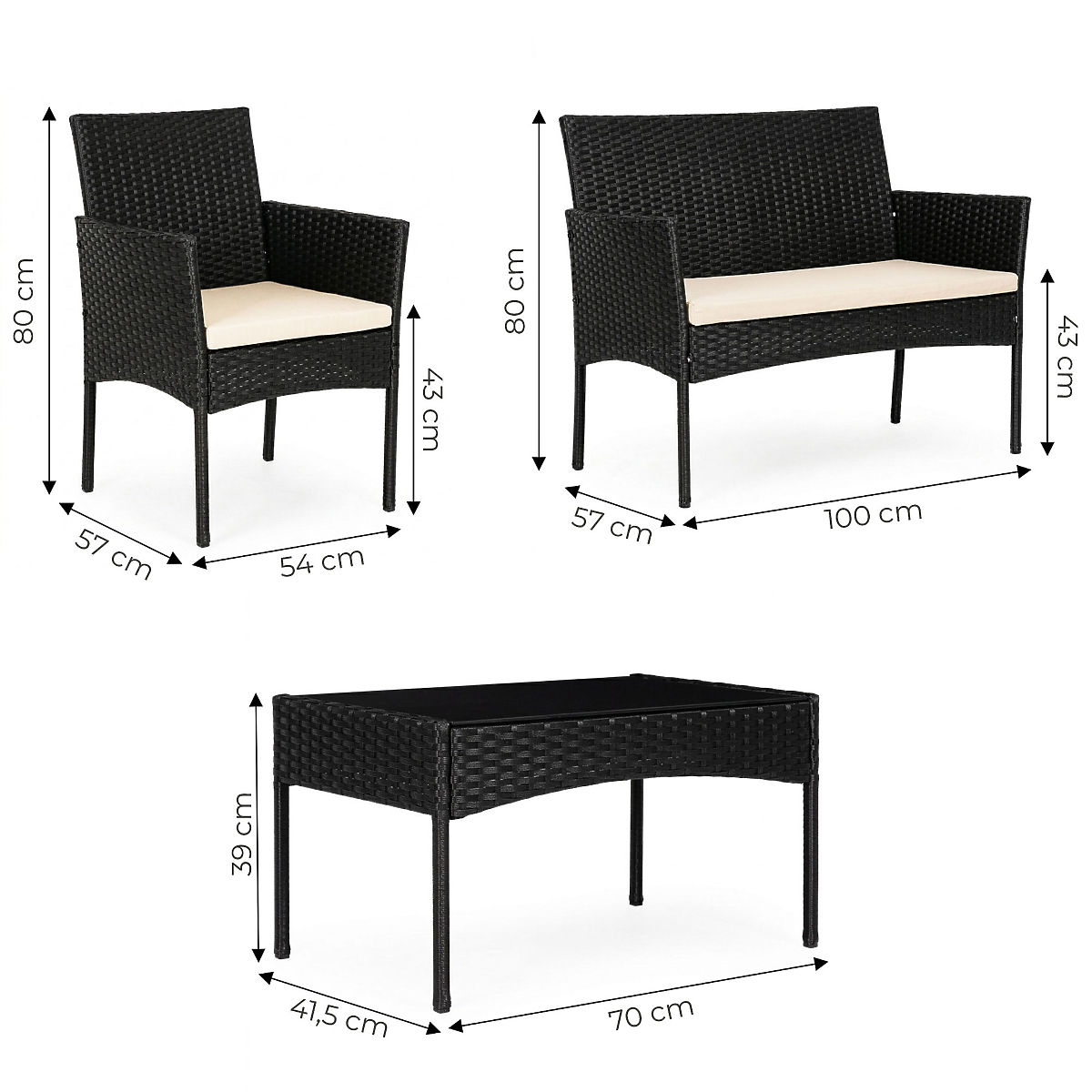 The garden furniture set is an ideal solution for creating a comfortable outdoor relaxation zone. It is perfect for family gatherings, barbecues, or evening relaxation after a long day. It's also a great spot for morning coffee, working on a laptop, or enjoying a favorite book. Its versatile character allows the set to be used in the garden, on the terrace, or on the balcony, offering comfort and functionality in any space.