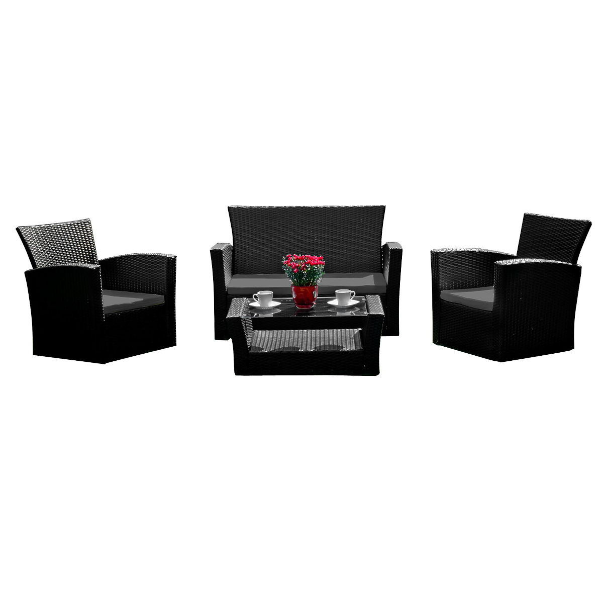 Lukahome.co.uk » Garden furniture / Garden sets / Garden Furniture from Technorattan (Sofa 123cm, 2 x Armchair + Table) UNICO Black