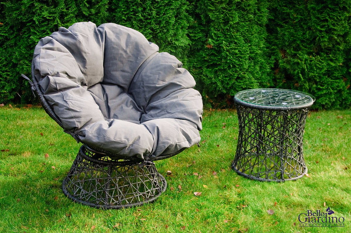 The TWIST lounger captures attention with its striking design and innovative shape, bringing a touch of modernity and originality to any outdoor space. The garden lounger features a swivel construction that allows easy adjustment of position according to individual preferences, enhancing comfort during relaxation. The balcony lounger, made of high-quality synthetic rattan, is resistant to harmful weather conditions, ensuring its durability and trouble-free use for years. Additionally, the impressively soft cushion made from sturdy material increases comfort, making the garden lounger an ideal place to relax in the tranquility of your home garden. It is an excellent choice for those who value a combination of functionality, comfort, and unique style in outdoor space arrangements. Color of the TWIST lounger: grey mélange, uneven Weaving: technorattan 7-8mm x 1.2mm, smooth structure Furniture construction: steel 1 x lounger: diameter: 85 cm seat depth: 50 cm height: 86 cm base diameter: 56 cm base height: 32 cm 1 x table diameter: 45 cm height: 45 cm The set is shipped in 1 carton with dimensions 90x90x68 cm, weight 20 kg Dark grey cushion included with the lounger! The cushion cover is made from high-quality fabric coated with Teflon (100% polyester), protecting it from moisture. Cushion thickness: 15 cm. The lounger rotates 360 degrees Technorattan is resistant to harmful weather conditions, but for longer preservation of the furniture's unchanged appearance, we recommend using and storing the product under a shelter or purchasing a protective cover. The dark grey cover is one-piece and has a drawstring at the bottom, threaded through metal eyelets. All covers are custom-made and the delivery time is approximately 21 working days. Imagine garden furniture that exceeds your expectations in every way – from durability to design. Here is BELLO GIARDINO, where every detail matters and luxury meets functionality: Indestructible quality: Our synthetic rattan guarantees that the furniture will last for years without losing its beauty or durability. Weather resistance: Our furniture withstands the toughest weather conditions, from scorching sun to freezing winters, remaining beautiful. Luxurious comfort: Thick, soft cushions invite relaxation, offering comfort that is hard to find elsewhere. Lightness and strength: The aluminum construction combines the best of both worlds – it is lightweight yet extremely stable. Design that enchants: Every element of our furniture is designed with aesthetics and functionality in mind, to fit into any environment. Whether you are a lover of minimalism or appreciate rich, elegant arrangements, our furniture will meet your expectations, surpassing the boundaries of ordinary functionality and aesthetics. We ensure that even the most demanding customers will not resist the comfort and style offered by BELLO GIARDINO. Turn your garden, terrace, or balcony into an oasis of relaxation and elegance that you've always wanted. Don't wait, discover BELLO GIARDINO today and transform your outdoor spaces into the places you've always dreamed of. Photos of furniture from our customers: