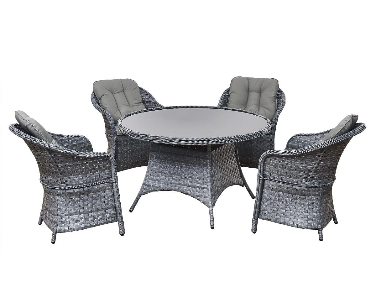 Dining Set from Technorattan (Round Table + 4 Chairs) MODERNO Gray