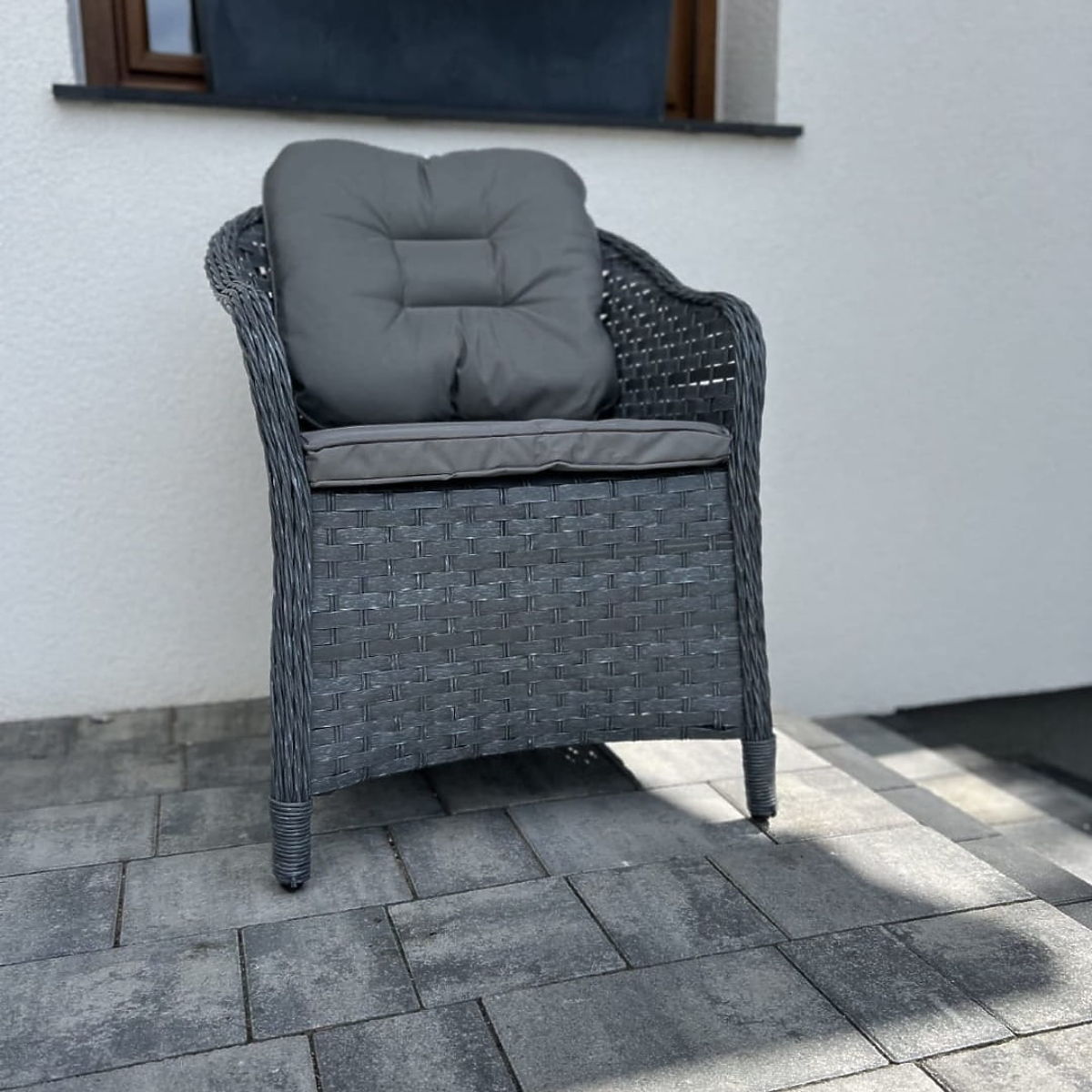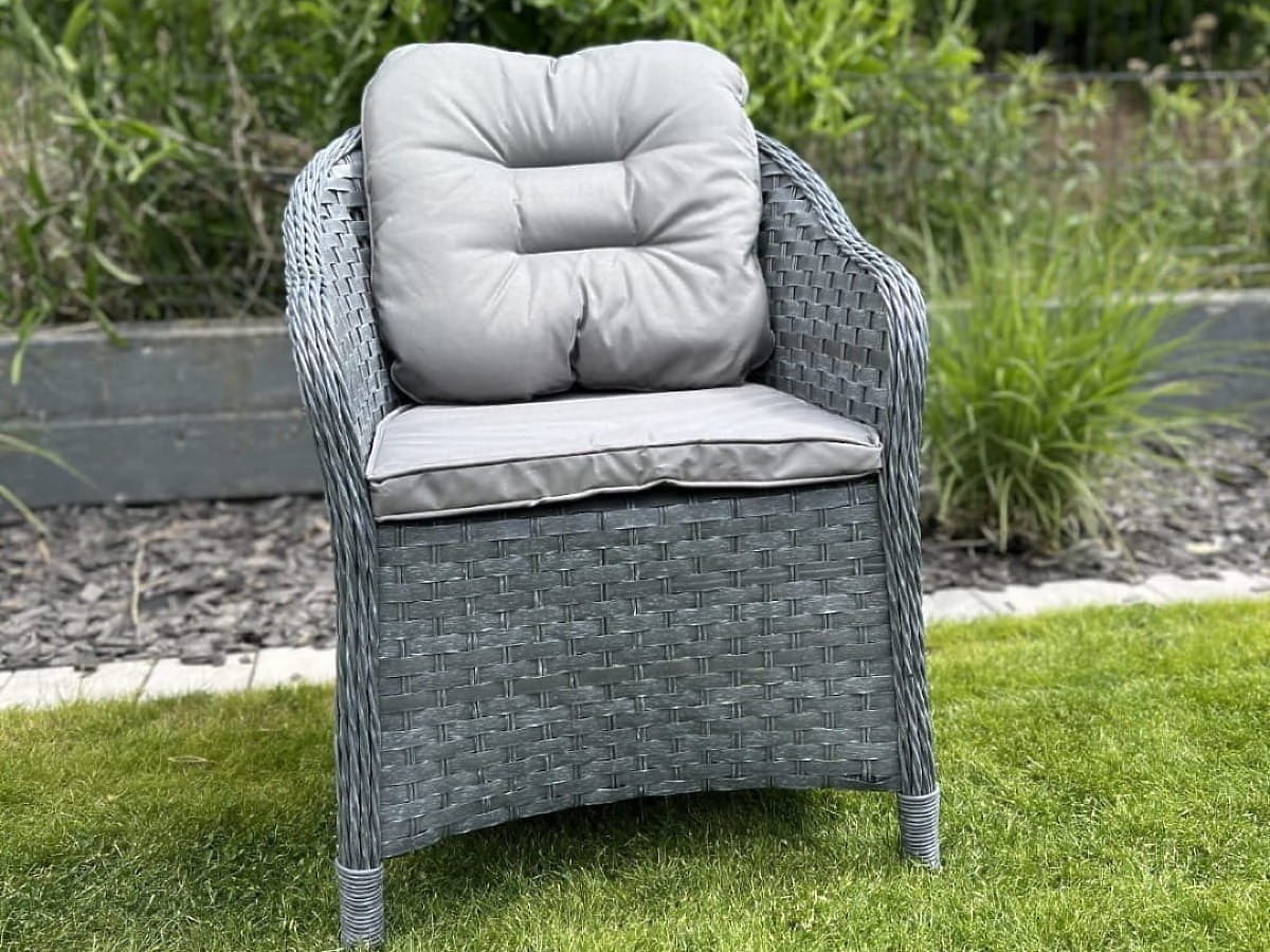 The MODERNO chair embodies perfection in every detail, combining elegance and functionality at the highest level. The chair's contoured backrest not only enhances comfort but also provides optimal support, making it an ideal choice for anyone wishing to relax in the fresh air. The subtle grey weave, complemented by an elegant light grey cushion, gives the MODERNO chair a versatile character that harmoniously adapts to various outdoor arrangements. This combination of high-quality materials and meticulous craftsmanship makes the chair not only exceptionally comfortable but also a stylish decorative element. Whether you place it on a terrace, balcony, or in the garden, the MODERNO chair will charm with its appearance and functionality, becoming a favorite resting spot for you and your guests. MODERNO chair color: grey melange, uneven Weave: flat technorattan 17mm x 1.2mm and round technorattan, smooth structure Construction: steel 1 x chair: width: 56 cm depth: 70 cm height: 81 cm Additional dimensions: Seat height of the chair: 38 cm + 5 cm cushion Backrest height from the seat: 50 cm Armrest and backrest width: 5 cm Seat width and depth: 52 x 52 cm The chair is shipped in 1 carton with dimensions 115x96x69 cm, weight 15 kg Cushion in grey color included with the chair (1 piece seat cushion) The cushion has a removable cover with a zipper, made of outdoor material (100% polyester), which can be washed at low temperatures. The cushion cover is made of high-quality fabric coated with Teflon, which protects it from moisture. The cushion filling is made of high-quality upholstery foam (medium hard - T25), which prevents deformation. Cushion thickness: 5 cm. Option to sew a cushion to individual order for this chair: https://www.bg-meble.pl/pl/p/Usluga-Krawiecka-Poduszki-Na-Zamowienie-/742 Option to sew a cushion cover to individual order for this chair: https://www.bg-meble.pl/pl/p/Usluga-Krawiecka-Poszewki-Na-Zamowienie/743 Imagine garden furniture that exceeds your expectations in every respect – from durability to design. Here is BELLO GIARDINO, where every detail matters, and luxury meets functionality: Timeless quality: Our synthetic rattan guarantees that the furniture will last for years without losing its beauty or durability. Weather resistance: Our furniture withstands the most demanding weather conditions, from scorching sun to freezing winters, remaining beautiful. Luxurious comfort: Thick, soft cushions invite relaxation, offering comfort hard to find elsewhere. Lightness and strength: The aluminum construction combines the best of both worlds – it is lightweight yet exceptionally stable. Design that enchants: Every element of our furniture is designed with aesthetics and functionality in mind, fitting into any environment. Whether you are a fan of minimalism or appreciate rich, elegant arrangements, our furniture will meet your expectations, surpassing the boundaries of ordinary functionality and aesthetics. We ensure that even the most demanding customers will not be able to resist the comfort and style offered by BELLO GIARDINO. Turn your garden, terrace, or balcony into an oasis of relaxation and elegance you've always wanted. Don't wait, discover BELLO GIARDINO today and transform your outdoor spaces into places you've always dreamed of.