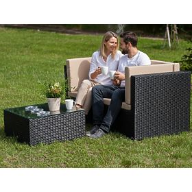 This garden furniture brings style and elegance to your balcony or terrace without taking up too much space. The technorattan furniture set is designed with maximum resistance to weather conditions such as moisture, wind, frost, and harmful UV effects, maintaining its unchanged appearance for many years. Thanks to the use of high-quality rattan, the TINTO balcony furniture is not only durable but also easy to maintain, making it an ideal solution for anyone who values comfort and minimalism in outdoor space arrangements. The elegant design and high functionality make the TINTO technorattan furniture set an exceptional addition, allowing you to enjoy beauty and comfort outdoors for many seasons. Set color: black Weave: technorattan 7-8mm x 1.2mm Furniture construction: steel The set consists of 3 elements: 1 x sofa (2 corner modules 68/68/63): width: 136 cm depth: 68 cm height: 63 cm 1 x table: length: 60 cm width: 60 cm height: 28 cm The set is shipped in 1 carton with dimensions 77x77x65 cm, weight 28 kg. Beige cushions included in the set (2 for seats and 4 for backrests). All have removable zip covers (100% polyester) that can be washed at low temperatures. Cushion thickness: seats 6 cm, backrests 8 cm. Option to sew cushions to order for this set: https://www.bg-meble.pl/pl/p/Usluga-Krawiecka-Poduszki-Na-Zamowienie-/742 Option to sew cushion covers to order for this set: https://www.bg-meble.pl/pl/p/Usluga-Krawiecka-Poszewki-Na-Zamowienie/743 Technorattan is resistant to harmful weather effects, but for even longer preservation of the furniture's unchanged appearance, we recommend using and storing the product under a roof or purchasing a protective cover. The dark gray cover is one-piece and has a drawstring at the bottom threaded through metal eyelets. All covers are custom-made and the delivery time is approximately 21 working days. Imagine garden furniture that exceeds your expectations in every way – from durability to design. This is BELLO GIARDINO, where every detail matters and luxury meets functionality: Timeless quality: Our synthetic rattan guarantees that the furniture will last for years without losing beauty or durability. Weather resistance: Our furniture withstands the toughest weather conditions, from scorching sun to freezing winters, remaining beautiful. Luxurious comfort: Thick, soft cushions invite relaxation and offer comfort hard to find elsewhere. Lightness and strength: The aluminum construction combines the best of both worlds – it's lightweight yet extremely stable. Design that enchants: Every element of our furniture is designed with aesthetics and functionality in mind, fitting any environment. Whether you are a fan of minimalism or appreciate rich, elegant arrangements, our furniture meets your expectations, surpassing the boundaries of ordinary functionality and aesthetics. We ensure that even the most demanding customers will not resist the comfort and style offered by BELLO GIARDINO. Make your garden, terrace, or balcony an oasis of relaxation and elegance you've always wanted. Don't wait, discover BELLO GIARDINO today and transform your outdoor spaces into places you've always dreamed of.