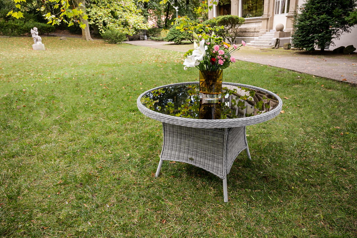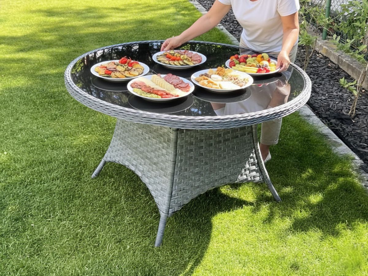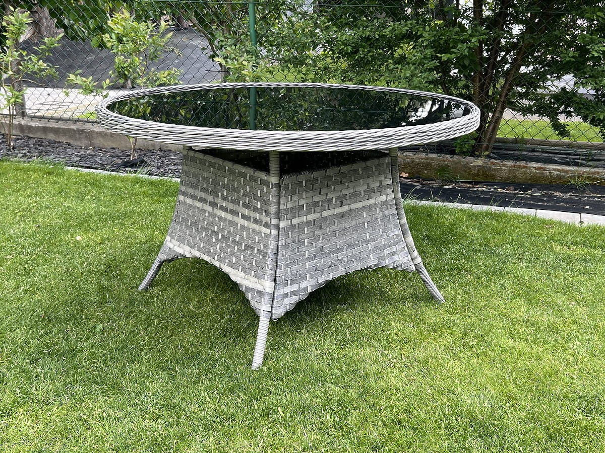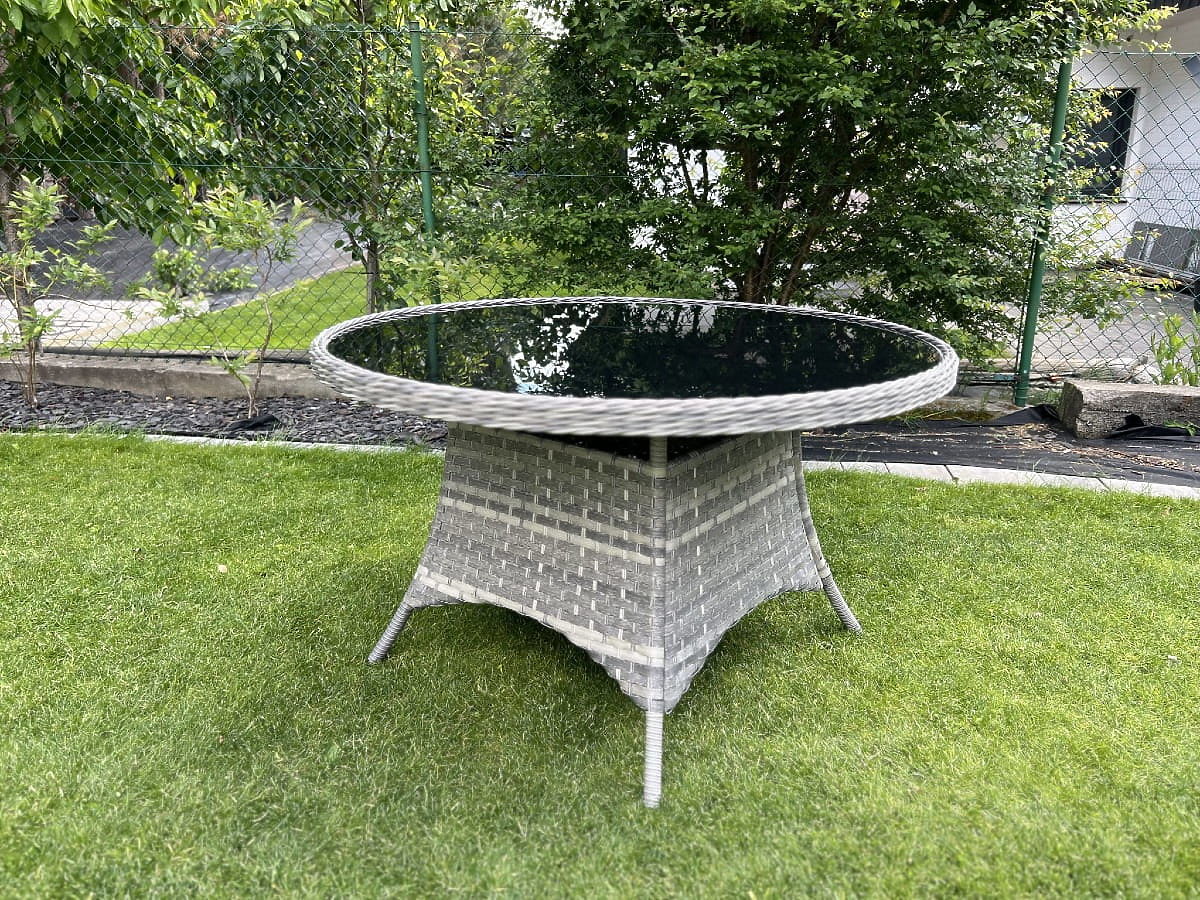 The MODERNO garden table is the quintessence of elegance and refined taste, offering a unique combination of gray technorattan with a round weave that mimics natural rattan. This combination not only emphasizes its beauty but also ensures durability and resistance to all weather conditions thanks to the use of the highest quality materials, including an aluminum frame. Ideally suited as the centerpiece of any outdoor relaxation space, it is a great choice for both modern and more traditional arrangements. Its versatility allows it to be combined with chairs made from various materials, enabling the creation of a personalized outdoor dining set. MODERNO not only captivates with its design but also with its functionality, being resistant to changing conditions, which guarantees long-term use and hassle-free maintenance. Table color: gray mélange Weave: semi-round and round technorattan, smooth texture Furniture frame: aluminum 1 x table (with a black glass top made of 5mm safety glass): diameter: 120 cm height: 74 cm The set is shipped on 1 pallet with dimensions 120x80x210 cm, weight 40 kg Technorattan is resistant to harmful weather effects, but to maintain the unchanged appearance of the furniture for longer, we recommend purchasing a protective cover. The dark gray cover is one-piece and has a drawstring at the bottom threaded through metal eyelets. All covers are custom-made and the delivery time is approximately 21 working days. Imagine garden furniture that exceeds your expectations in every way – from durability to design. This is BELLO GIARDINO, where every detail matters and luxury meets functionality: Unchanging quality: Our synthetic rattan guarantees that the furniture will last for years without losing its beauty or durability. Weather resistance: Our furniture withstands the harshest weather conditions, from scorching sun to freezing winters, remaining beautiful. Luxurious comfort: Thick, soft cushions invite relaxation, offering comfort hard to find elsewhere. Lightness and strength: The aluminum frame combines the best of both worlds – it is lightweight yet exceptionally stable. Design that enchants: Every element of our furniture is designed with aesthetics and functionality in mind, fitting into any environment. Whether you are a fan of minimalism or appreciate rich, elegant arrangements, our furniture meets your expectations, surpassing the boundaries of ordinary functionality and aesthetics. We guarantee that even the most demanding customers will not resist the comfort and style offered by BELLO GIARDINO. Turn your garden, terrace, or balcony into an oasis of relaxation and elegance that you have always wanted. Don't wait, discover BELLO GIARDINO today and transform your outdoor spaces into the places you've always dreamed of.
