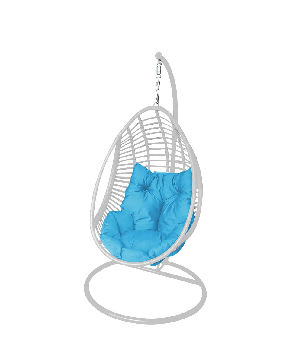 Hanging Chair BELLISSIMO (chair + frame) in White Technorattan with Blue Cushion, Cover GRA