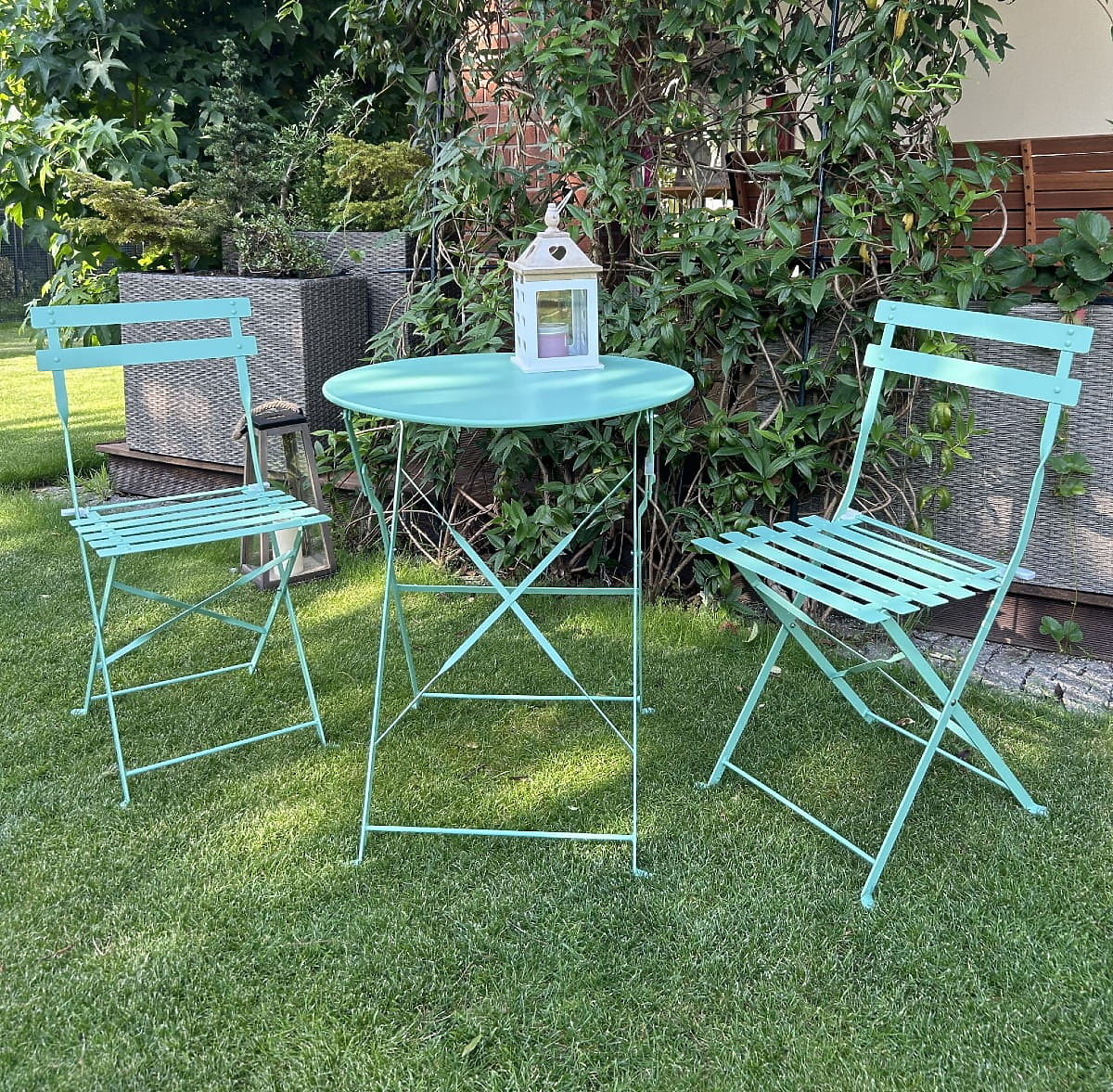 Do you dream of comfortable relaxation in the fresh air, but your balcony or terrace isn't the largest? The Semplici garden furniture set is the perfect solution for you! This compact balcony furniture is made of high-quality steel, enchanting with an elegant design that fits perfectly into any space. The durable construction ensures stability and long-lasting use, and the easy folding and unfolding system makes storage and transport hassle-free. Once folded, it takes up minimal space, making it an ideal choice even for the smallest balconies. Comfortable steel chairs with backrests and a suitably sized table provide a cozy setting for relaxation with family and friends. The tabletop easily accommodates drinks, snacks, and board games, and the sturdy construction ensures stability even during the liveliest gatherings. The Semplici terrace furniture offers a cozy relaxation zone where you can enjoy carefree rest in the fresh air. SEMPLICI set color: Mint Construction: Steel The set consists of 3 elements: 2 x chairs: Height: 80 cm Width: 41 cm Depth: 46 cm 1 x table: Height: 71 cm Tabletop diameter: 60 cm The set is shipped in one box with dimensions 96x61x16.5cm / weight: 15kg Imagine garden furniture that exceeds your expectations in every way – from durability to design. That's BELLO GIARDINO, where every detail matters and luxury meets functionality: Unmatched quality: Our synthetic rattan guarantees that the furniture will last for years without losing its beauty or durability. Weather resistance: Our furniture withstands the harshest weather conditions, from scorching sun to freezing winters, and remains beautiful. Luxurious comfort: Thick, soft cushions invite relaxation, offering comfort that's hard to find elsewhere. Lightness and durability: The aluminum construction combines the best of both worlds – it's lightweight yet exceptionally stable. Design that impresses: Every element of our furniture is designed with aesthetics and functionality in mind, fitting into any environment. Whether you love minimalism or appreciate rich, elegant arrangements, our furniture will meet your expectations, surpassing the boundaries of ordinary functionality and aesthetics. We guarantee that even the most demanding customers won't resist the comfort and style offered by BELLO GIARDINO. Turn your garden, terrace, or balcony into an oasis of relaxation and elegance you've always wanted. Don't wait, discover BELLO GIARDINO today and transform your outdoor spaces into the places you've always dreamed of.