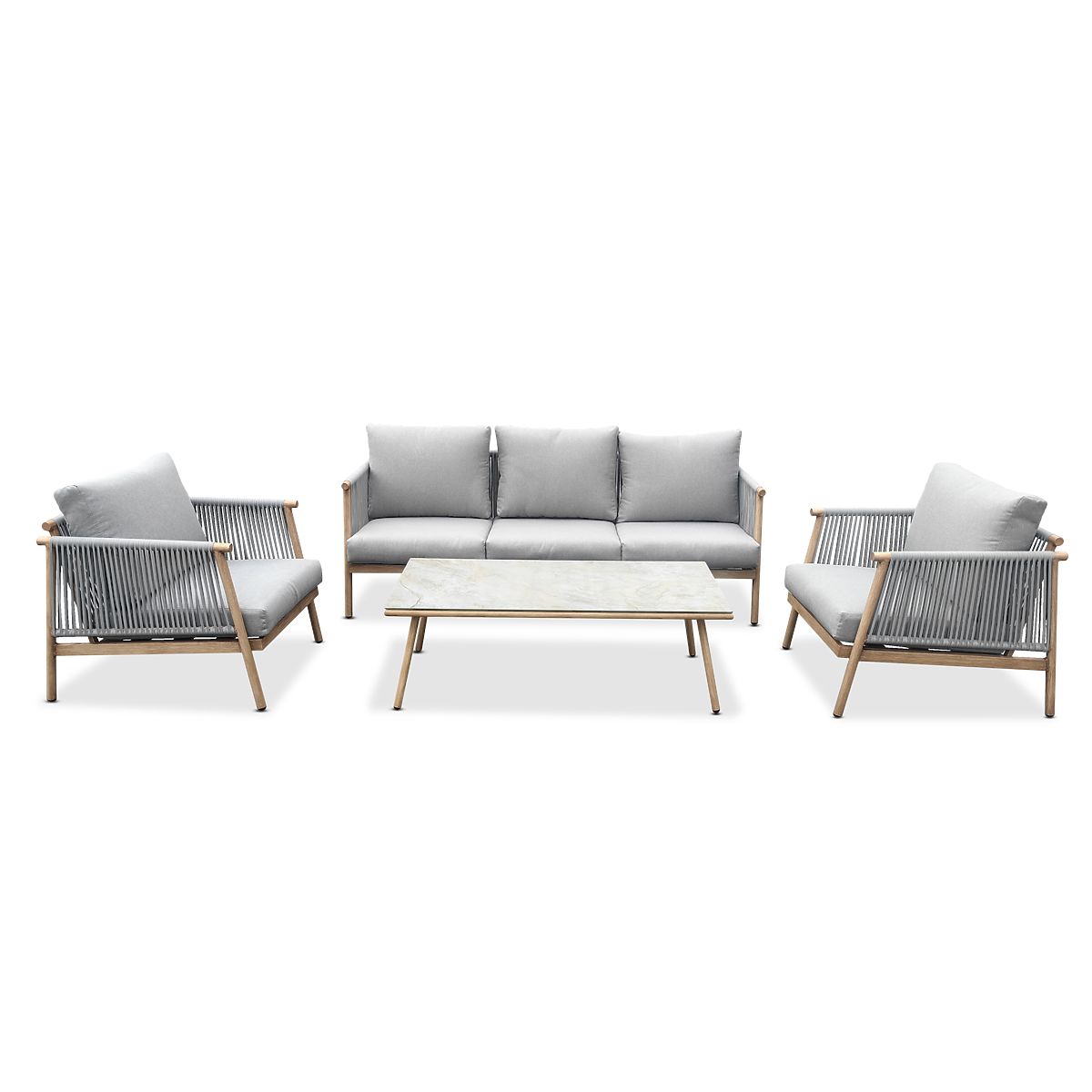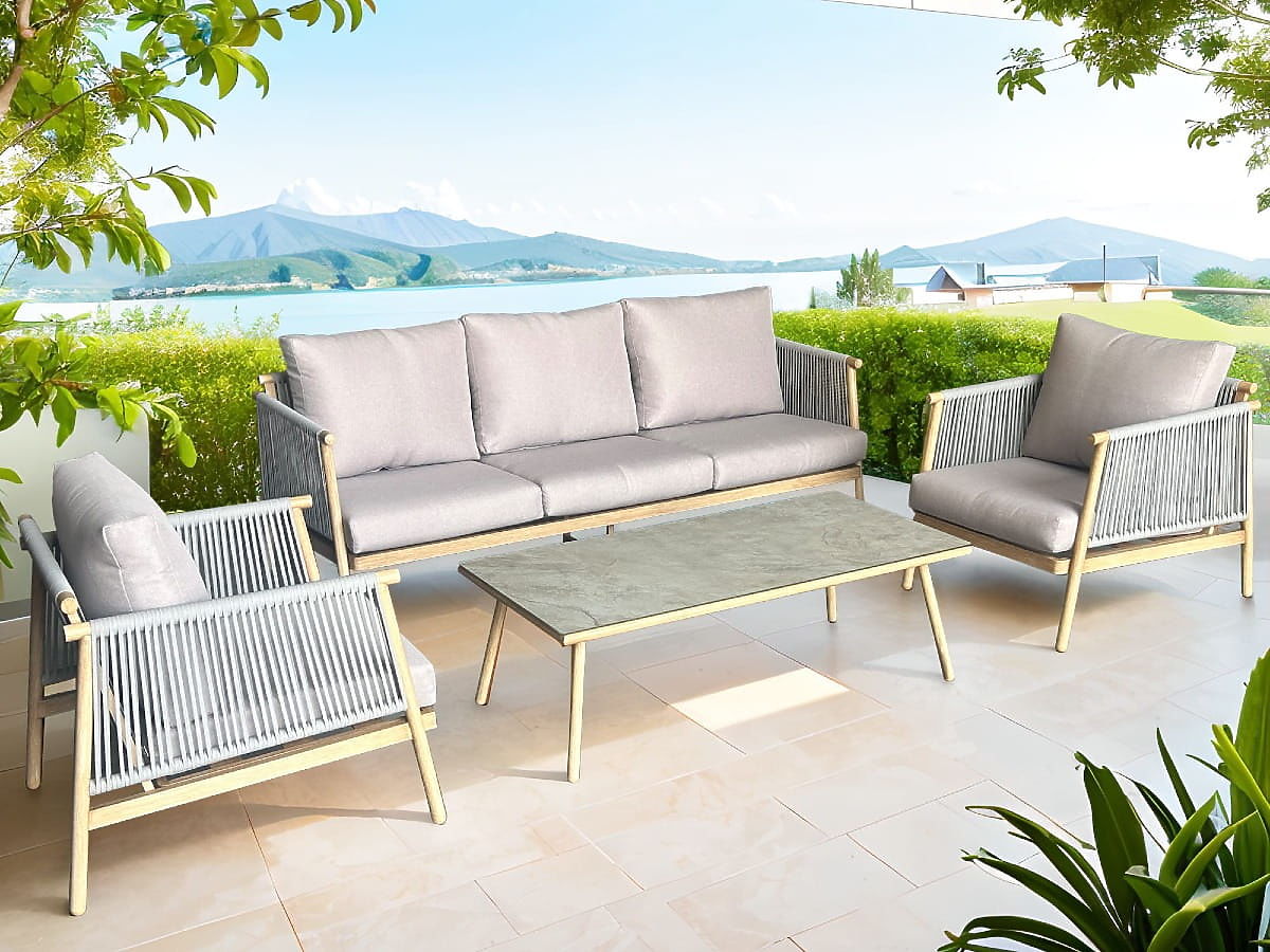 Aluminum Patio Furniture Set (Large Sofa, 2 Armchairs, and Table) BLANDO Light Gray, Aluminum