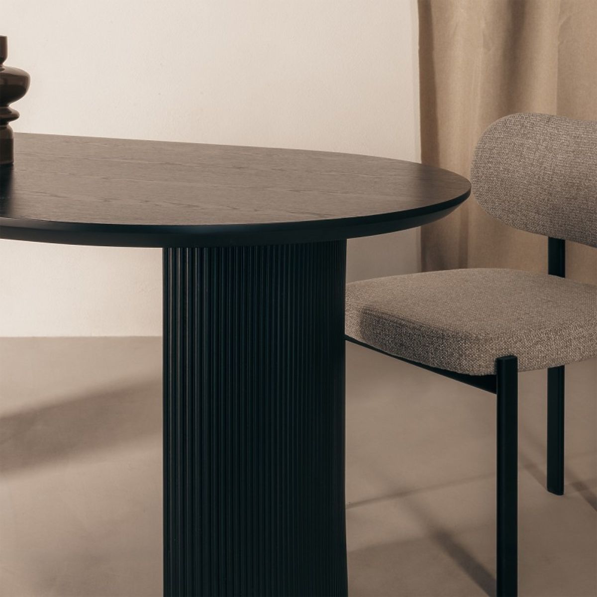 The Maurizio table is an excellent choice for those who want to add an extraordinary element to their dining room. Its oval top provides a comfortable space for communal dining, and the sturdy, grooved base ensures stability and a unique design.