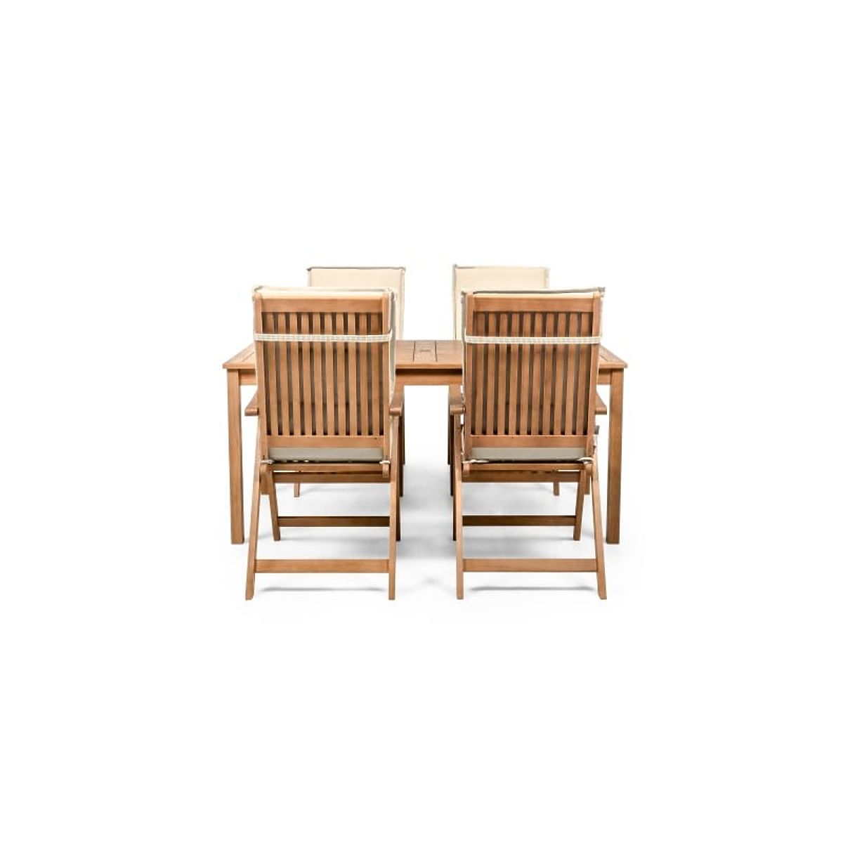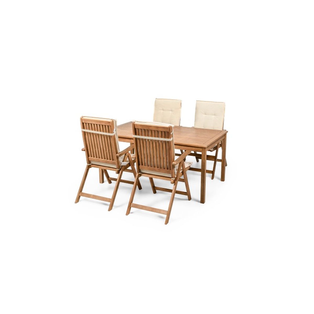 Lukahome.co.uk » Garden furniture / Garden sets / Garden Set Familis Table 160 cm + 4 Chairs with Adjustable Backrests and Cream Cushions, Wood
