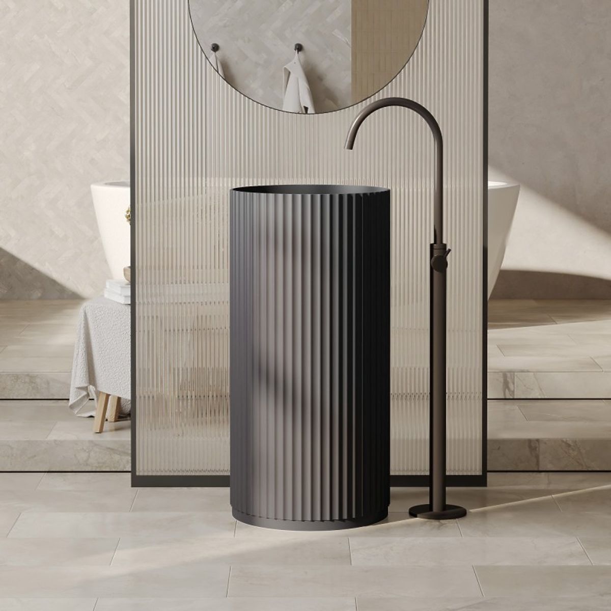 Ciriola is a washbasin that defines modern design. Its clean, minimalist form, enriched with precise grooving, creates a surprising texture that catches the eye and adds depth to the interior. It is the perfect combination of form and function, proving that true elegance lies in the details.