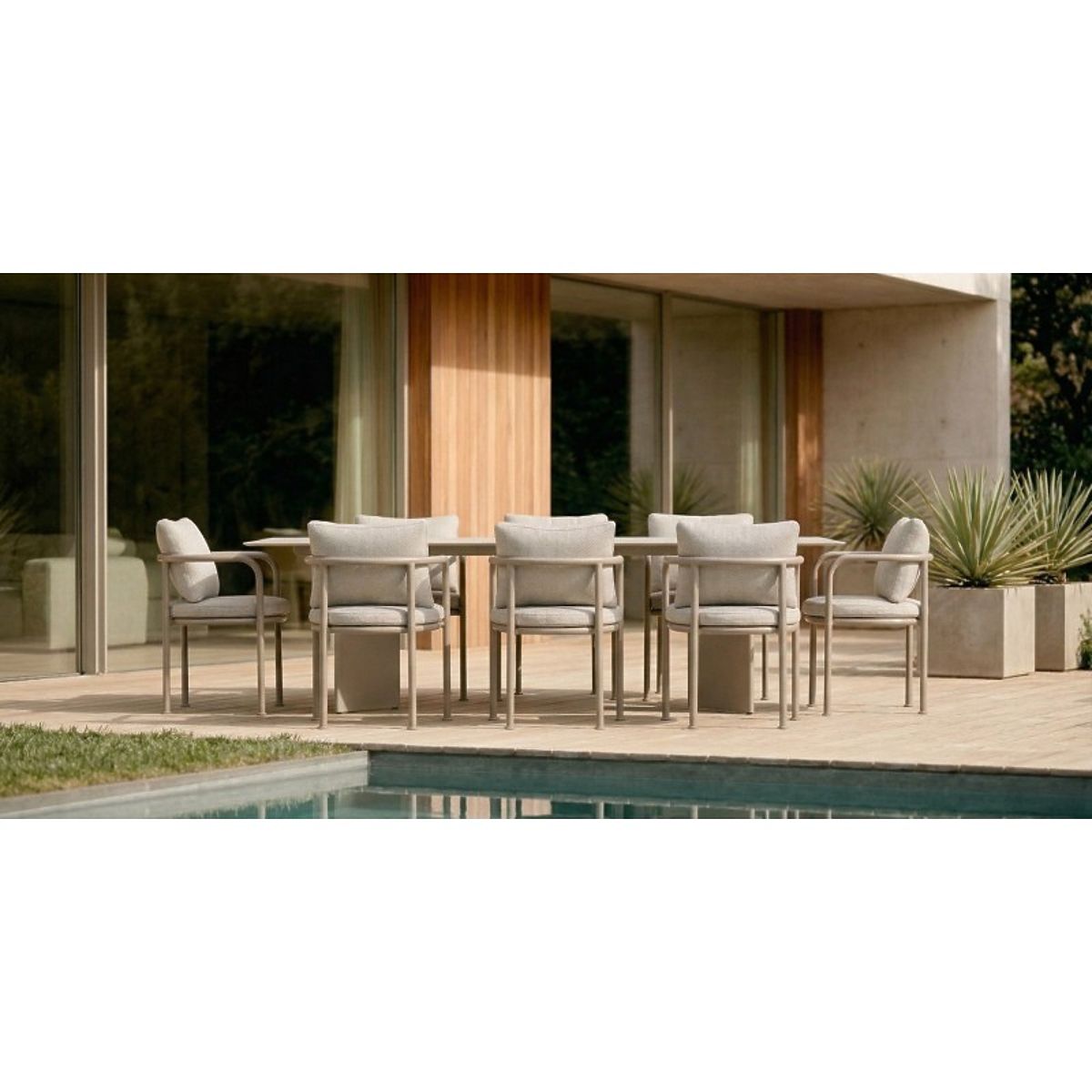 Light beige aluminum garden table with a 220x100 cm rectangular top. .. more