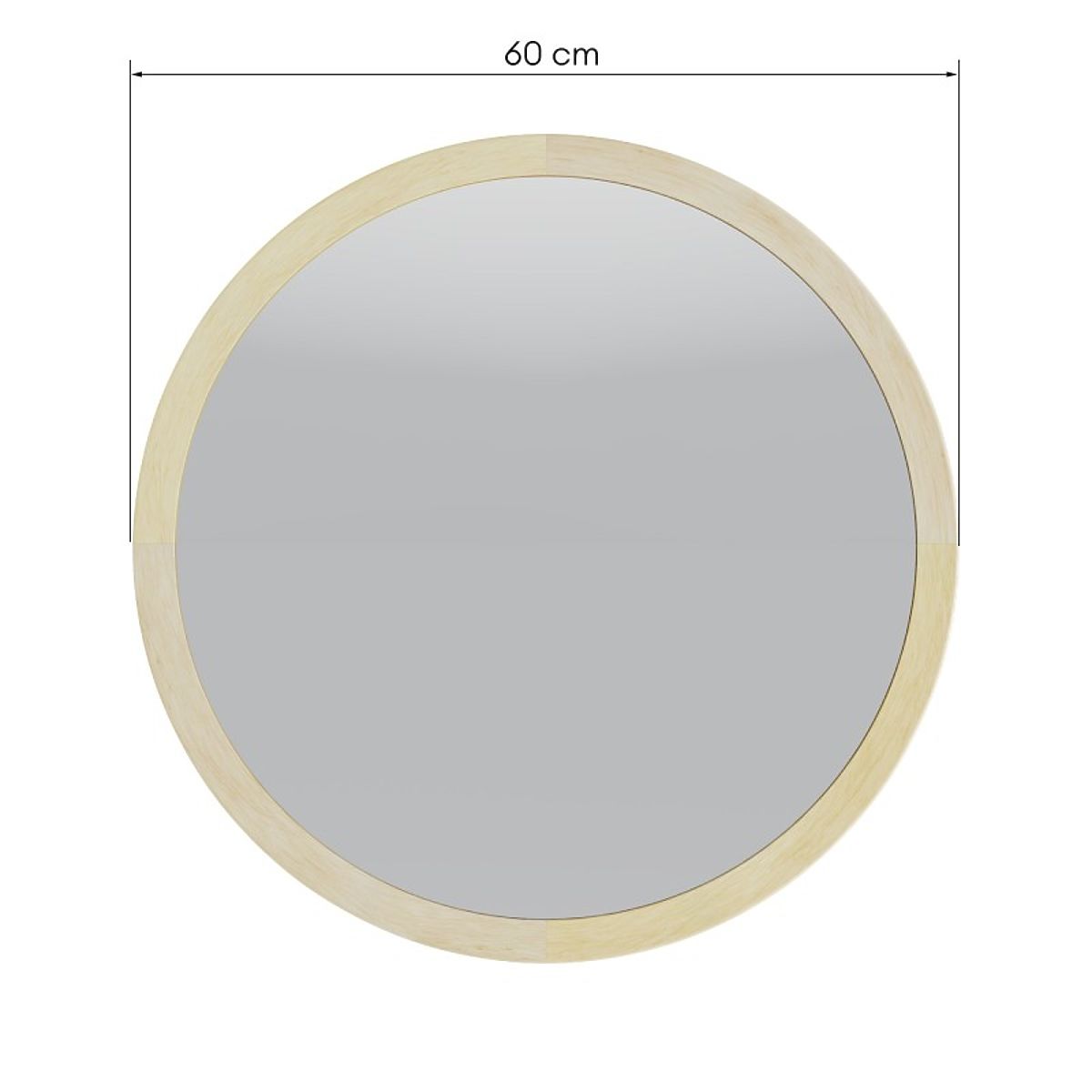 Hanging Mirror in Wooden Frame Sesto 60 cm, Round, Natural