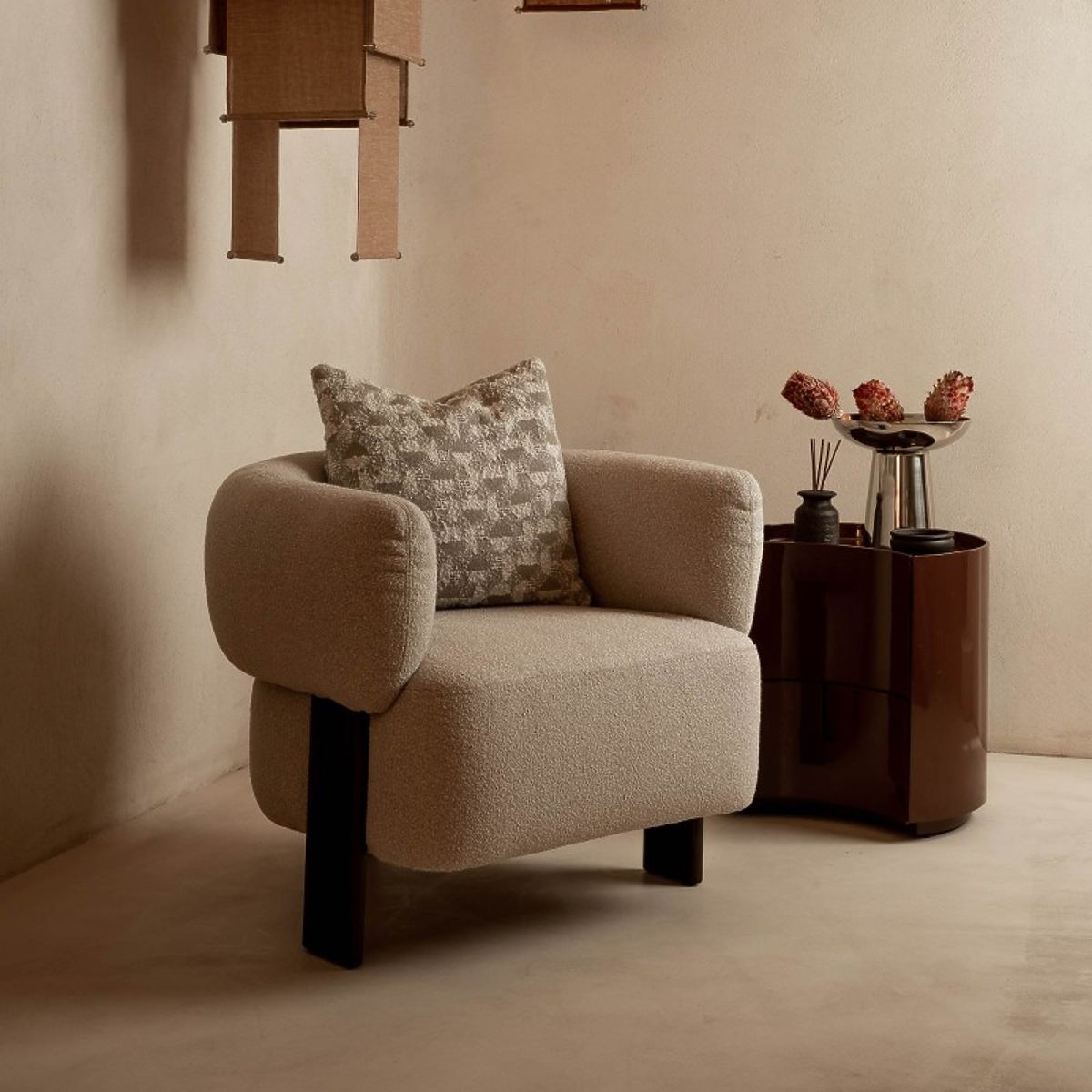 The Vena bedside table combines modern design with everyday functionality. Its rounded shape brings a harmonious element to the bedroom, and the unusual color adds an exceptional character to the whole.