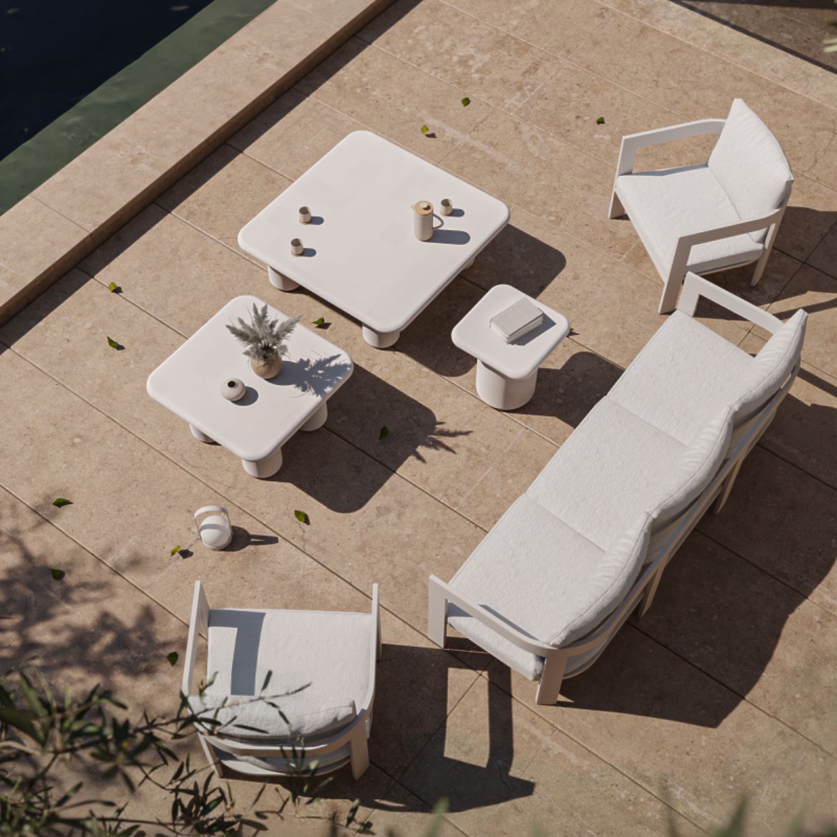 The Vibonis table in light beige is a true ornament for any garden. Elegant and durable, it perfectly complements the natural environment, bringing lightness and harmony to the space. An ideal choice for modern arrangements.