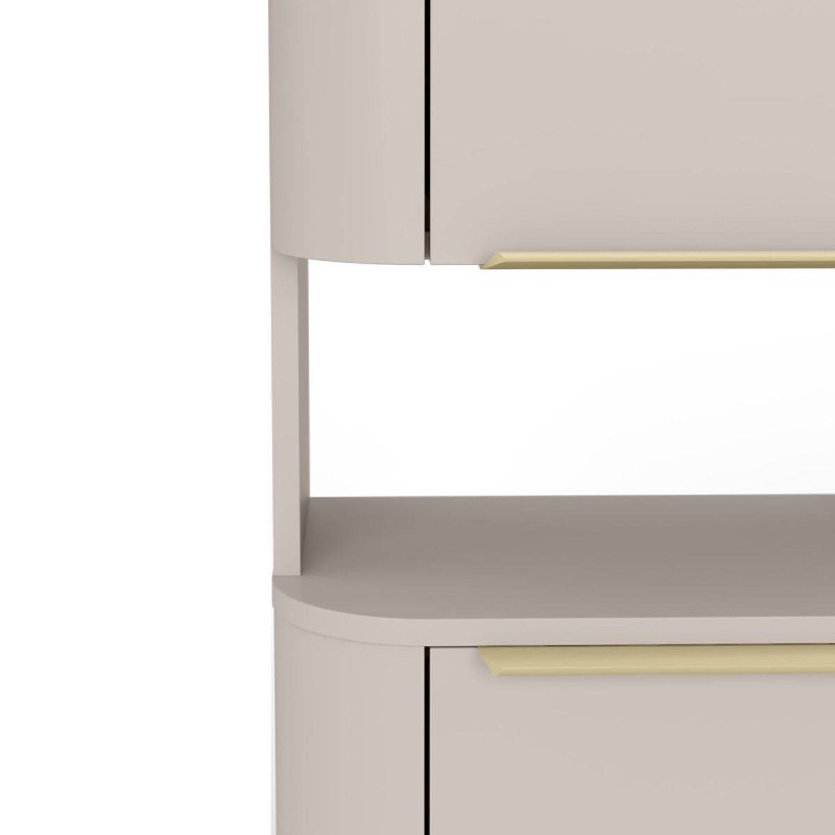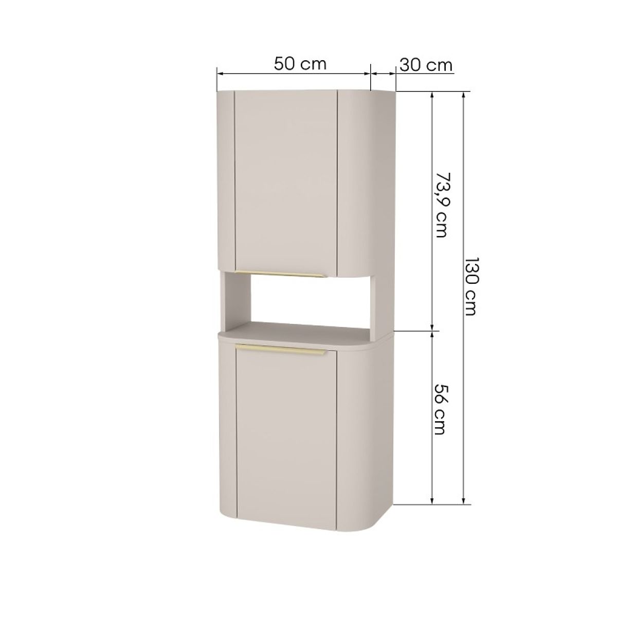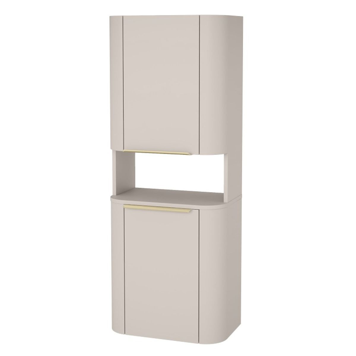 Meet the Bassa bathroom column, which combines subtle elegance with exceptional functionality. Its fashionable cashmere shade and rounded shapes, enriched with gold handles, will bring an extraordinary atmosphere to your bathroom.