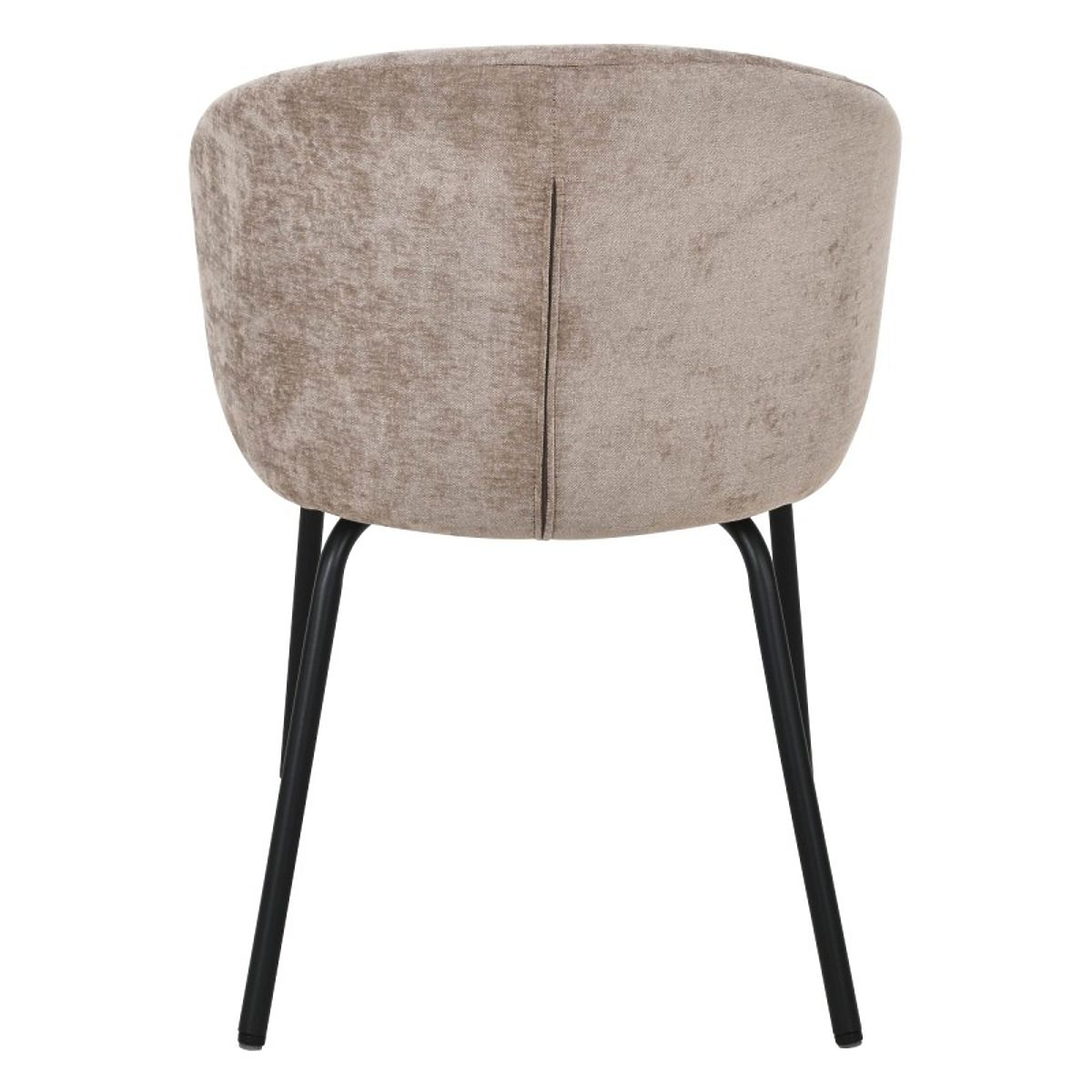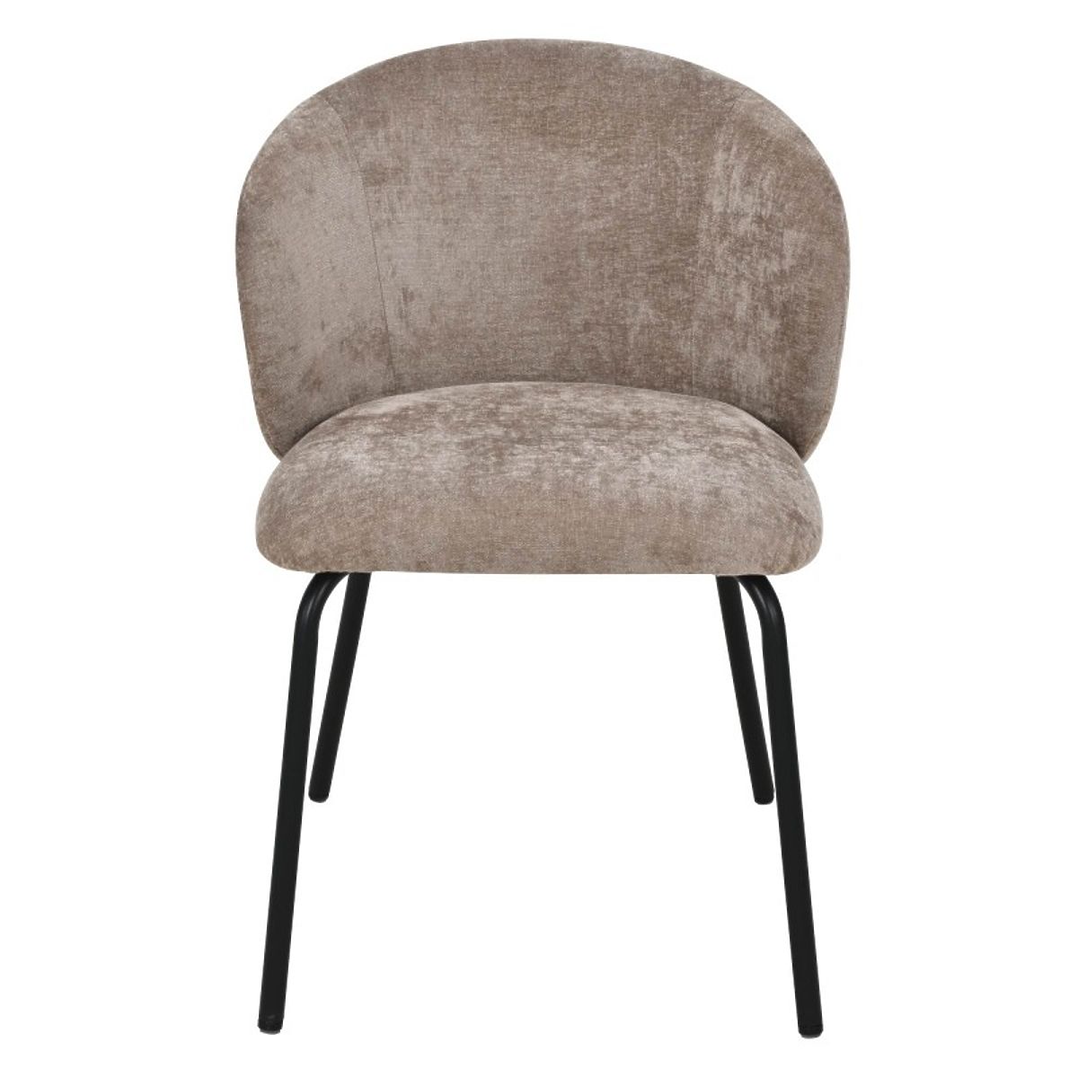 The Larisa chair combines modern elegance with comfort. Its soft seat and rounded backrest are upholstered in a pleasant brown fabric that adds warmth to any interior. The black, sturdy legs provide a striking contrast and stability, emphasizing its stylish character.