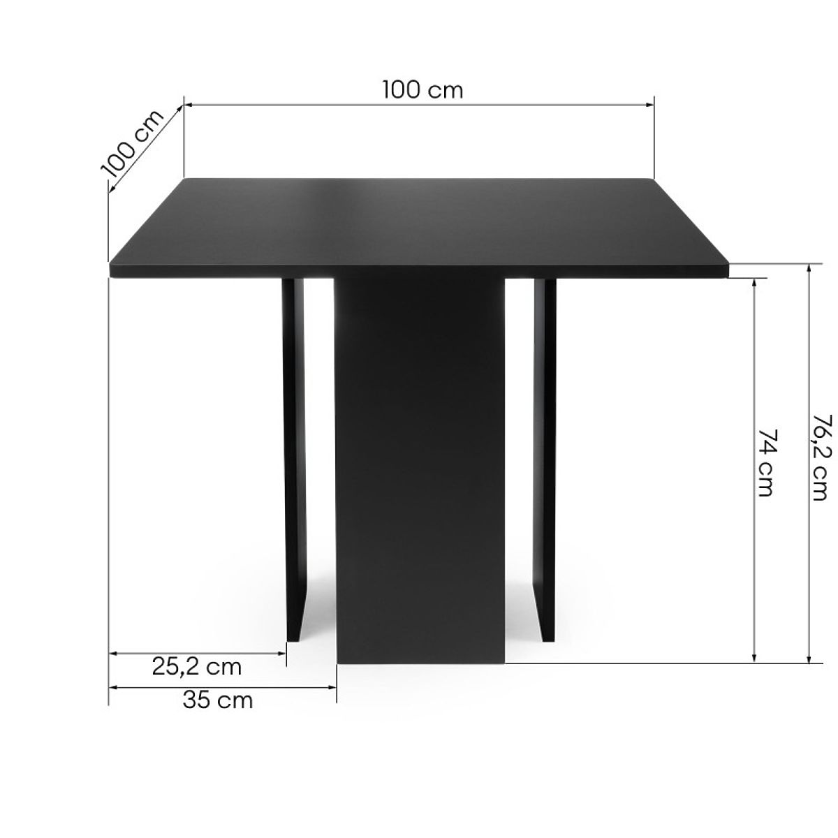 The Gasper table features a modern design in a deep black color. Its square top is set on a distinctive base that ensures stability and a unique appearance. This project is intended for lovers of minimalism who are looking for simple yet striking furniture for their dining room.