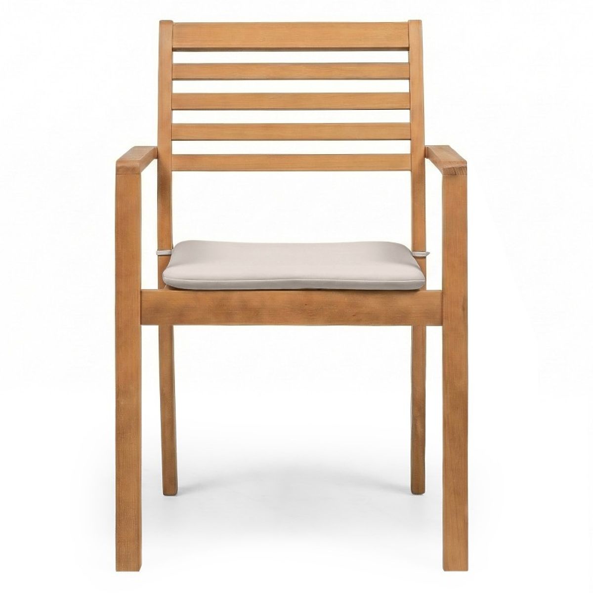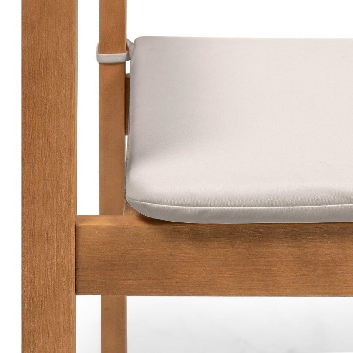 Solid eucalyptus wood chair with light grey cushion and teak finish. .. more