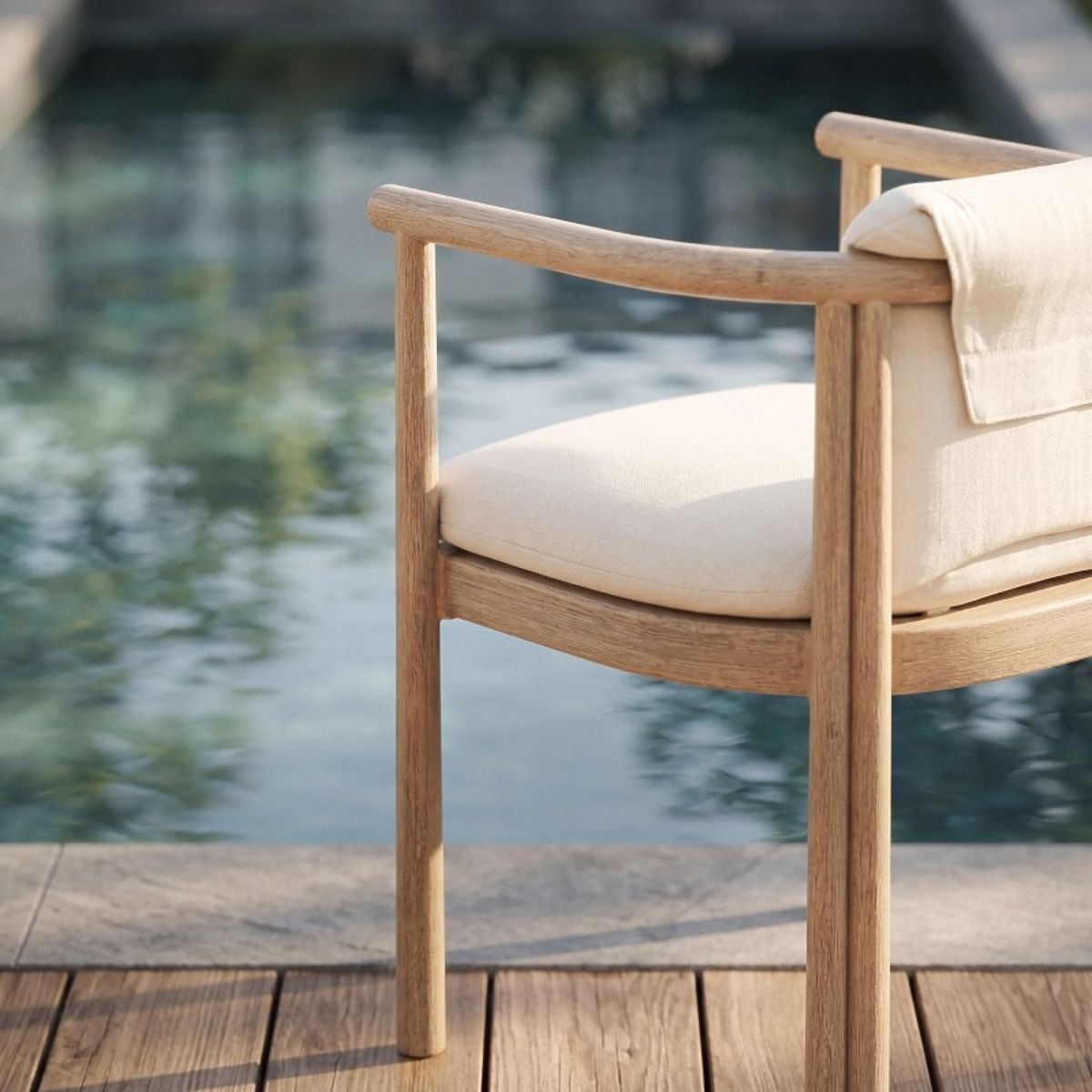 The Komorebi chair is a harmonious blend of natural acacia wood with modern design, transforming your outdoor relaxation. With its stable construction and soft, comfortable cushions, every moment spent in the garden becomes pure pleasure.