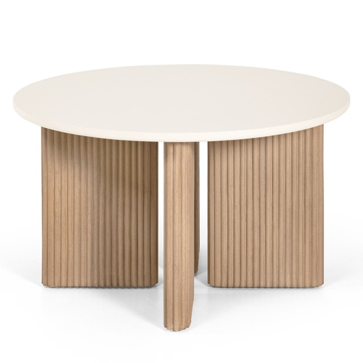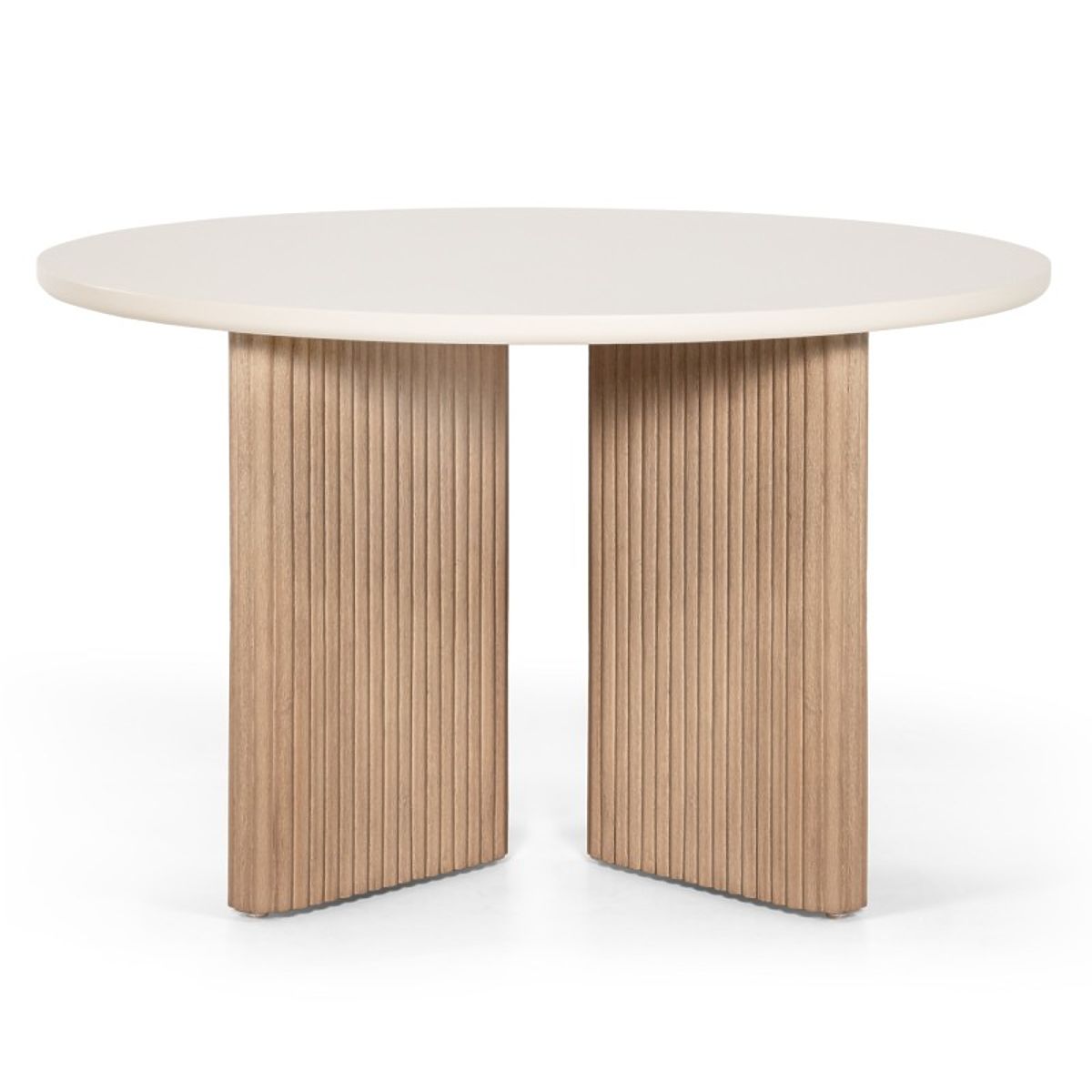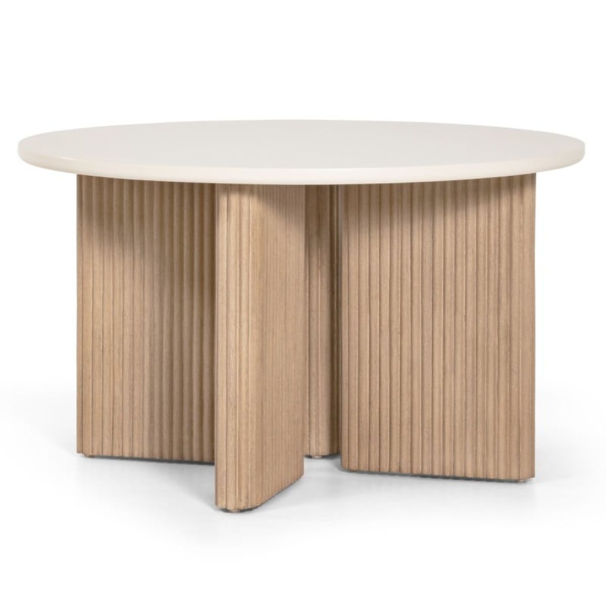 Lukahome.co.uk » Garden furniture / Garden tables / Garden Table Komorebi 130 cm with Stone Top, Light Acacia Wood/Light Beige, Round, Slats