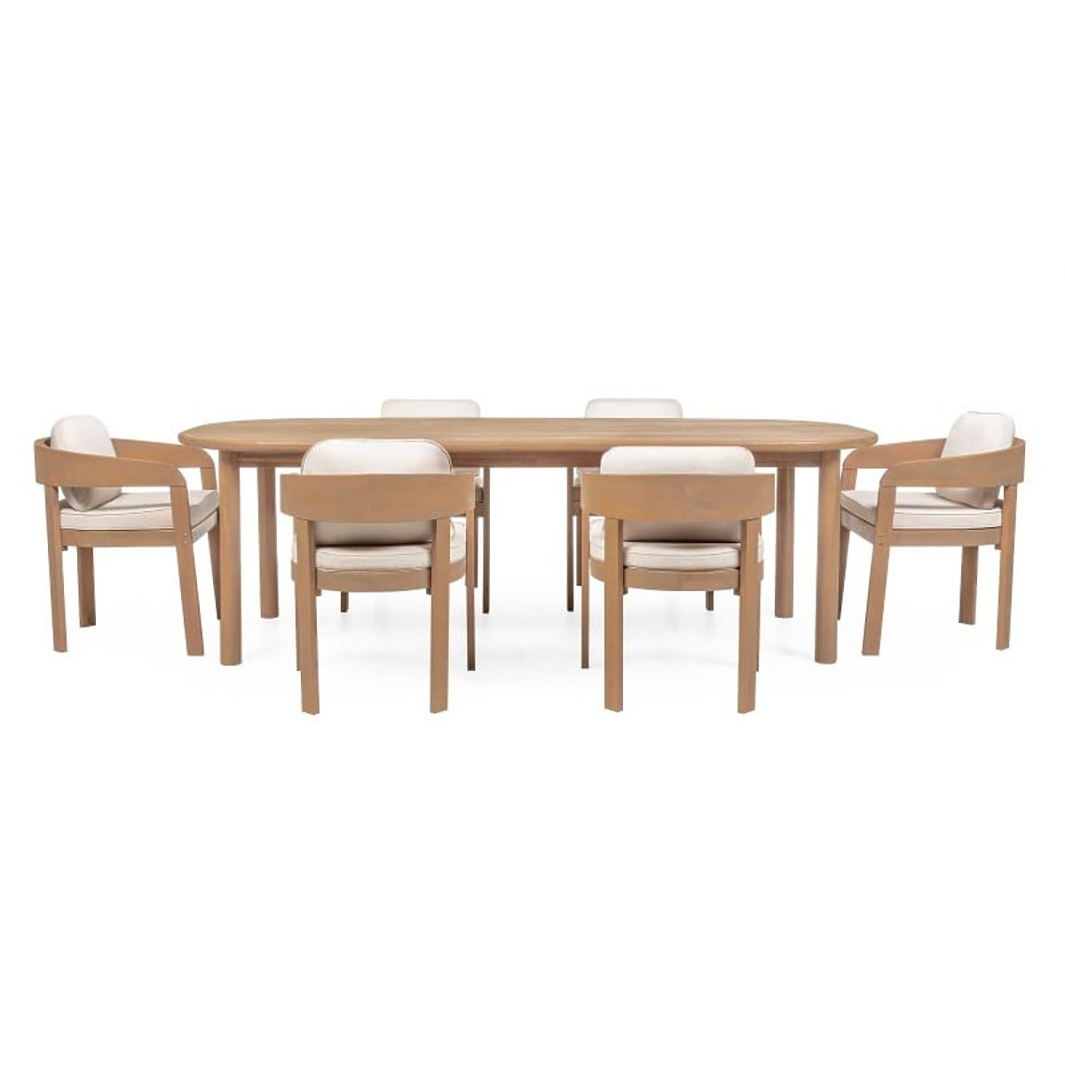 Lukahome.co.uk » Garden furniture / Garden sets / Garden Set Satori II, Table 240 cm + 6 Chairs, FSC Acacia Wood, Teak Look, Beige, Rounded