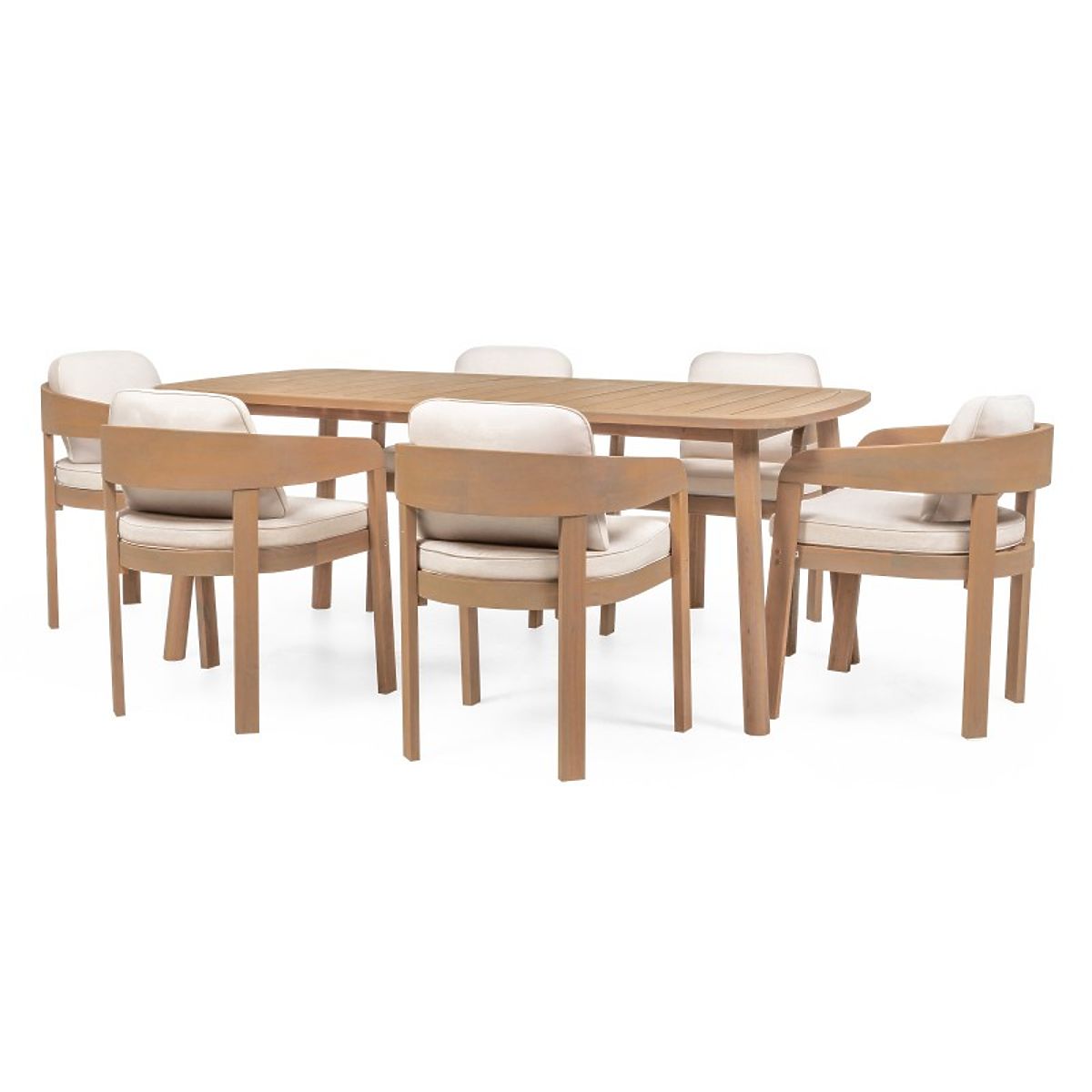 Lukahome.co.uk » Garden furniture / Garden sets / Garden Set Satori, Table 183 cm + 6 Chairs, FSC Acacia Wood, Teak Look, Beige, Rounded
