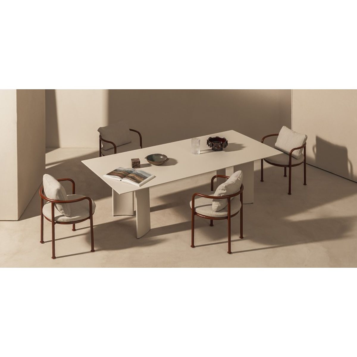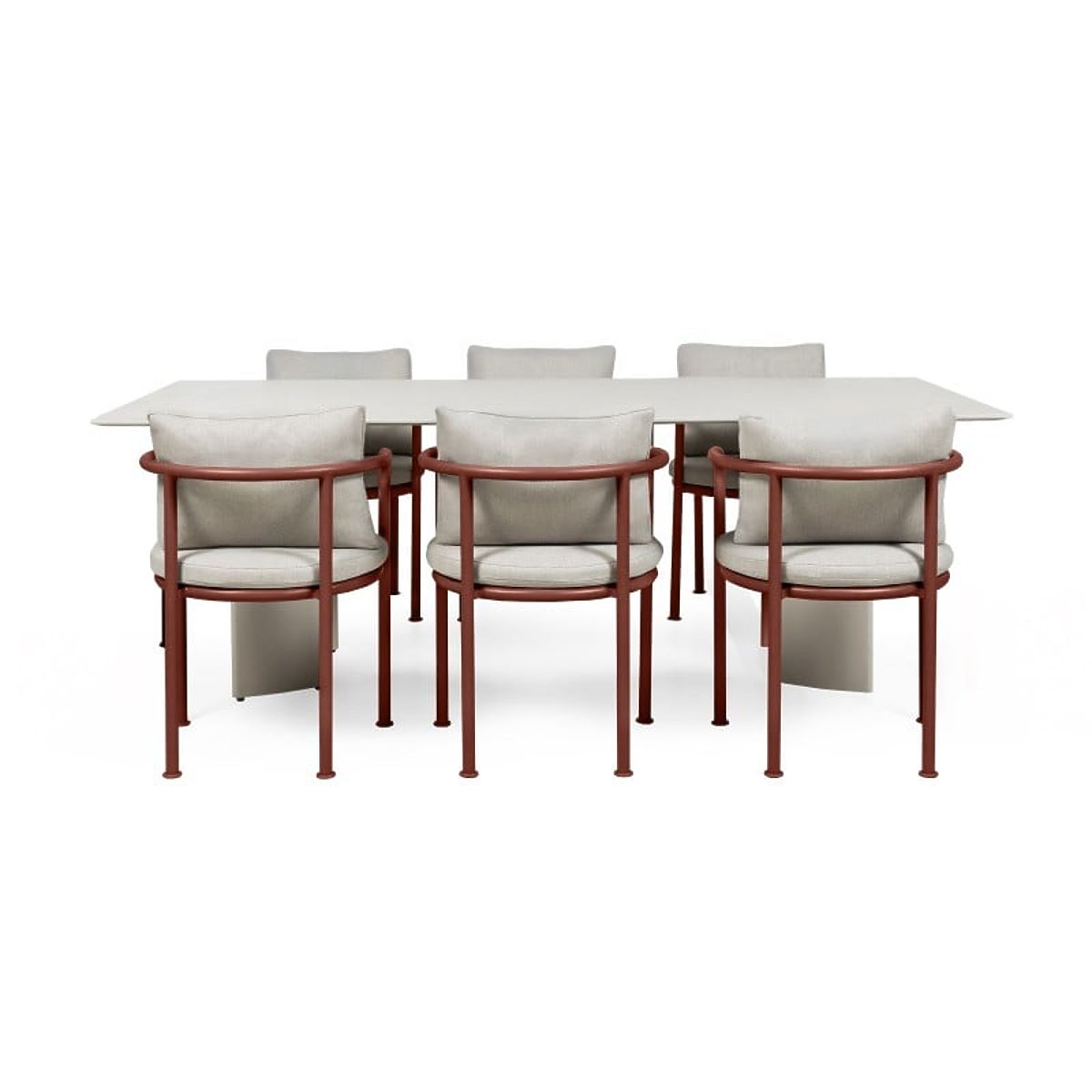 Aluminum garden set with a 220 cm table and 6 chairs in light beige and burgundy brown. .. more