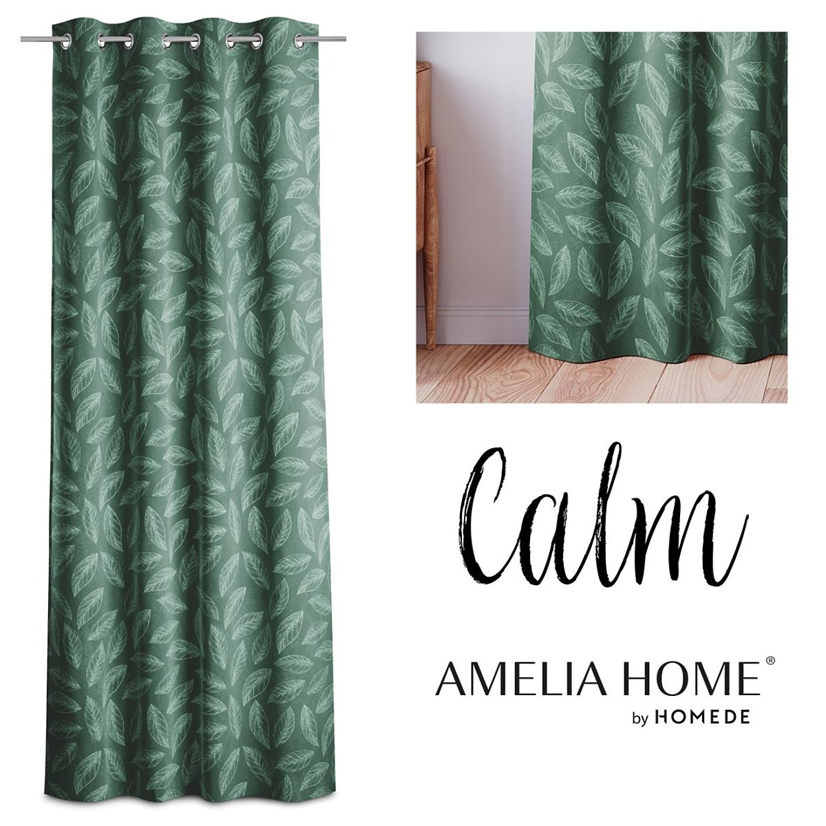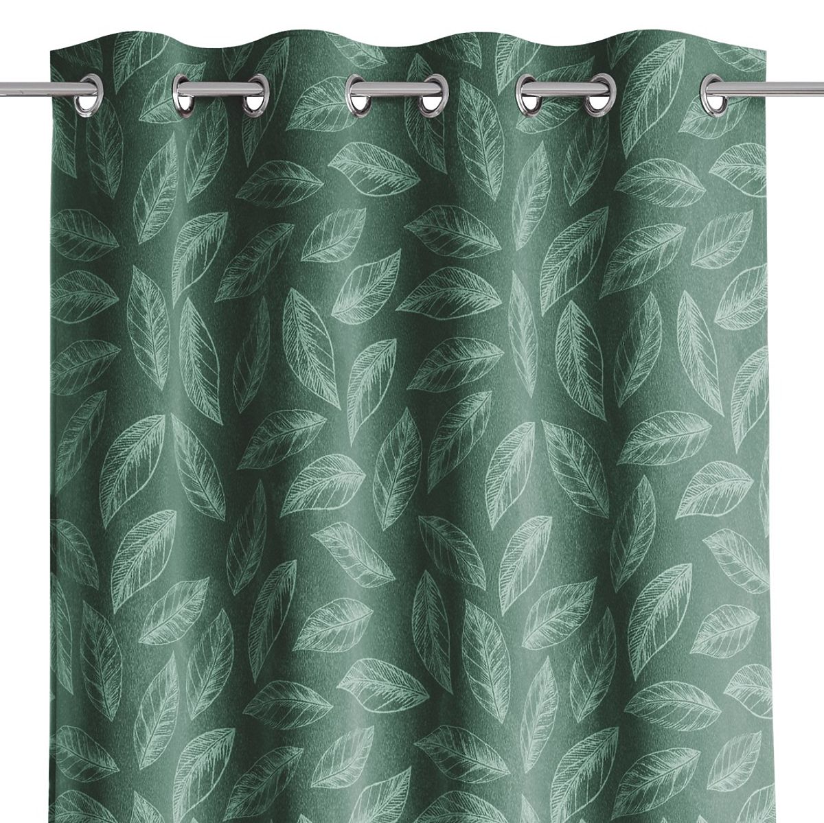 Lukahome.co.uk » Curtains and curtains / Curtains / CALM Curtain Bottle Green Color Printed Plant Motif Classic Style Silver Metal Rings