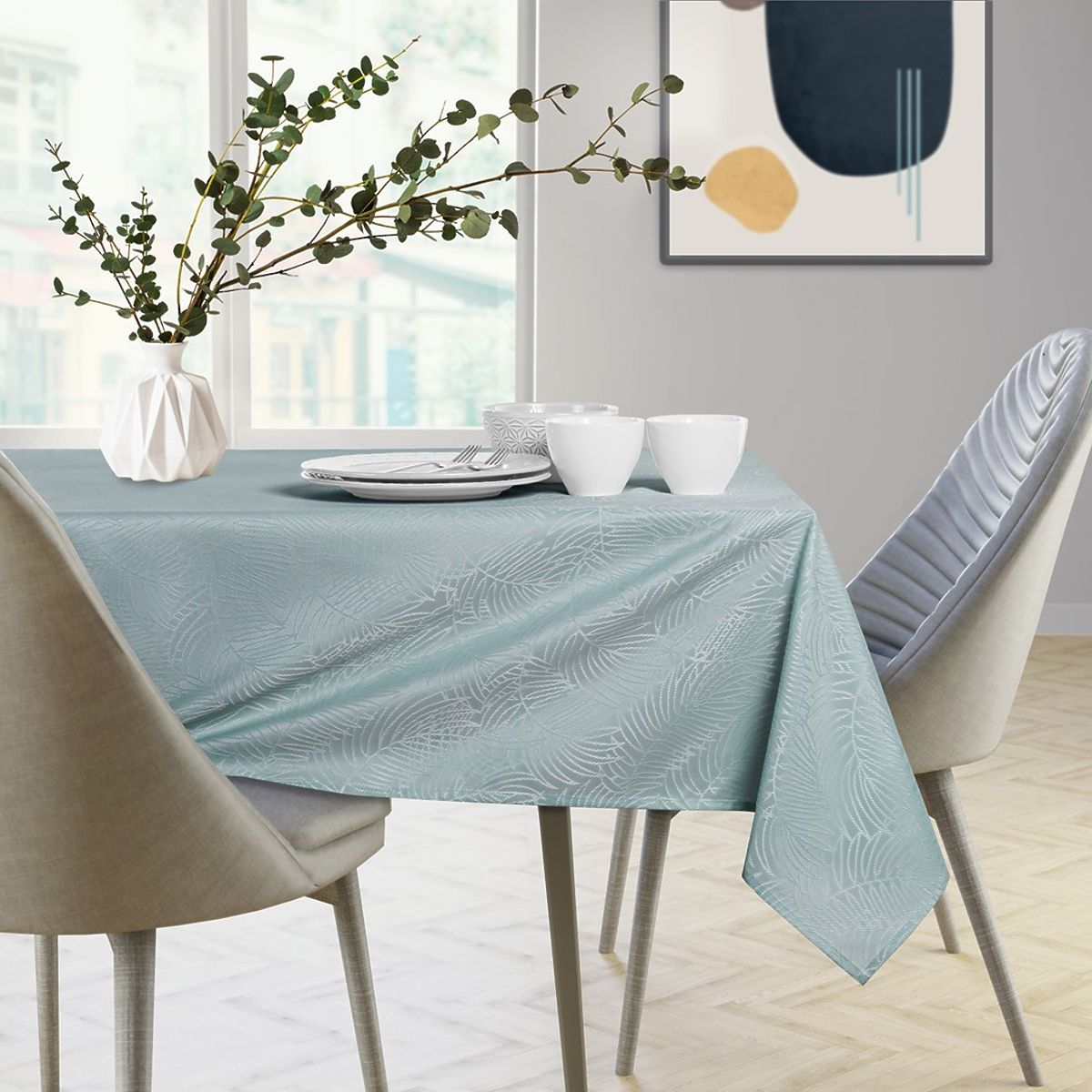 Lukahome.co.uk » Decoration / Decorations and accessories / Tablecloth GAIA mint color with embossed plant motif 140x180 ameliahome