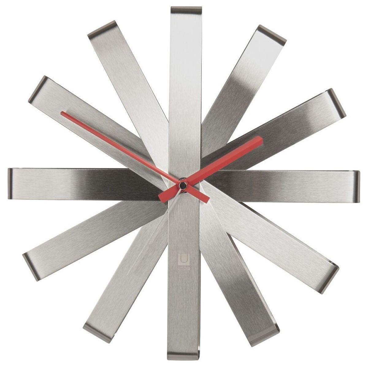 Grey steel wall clock from the Ribbon collection by Umbra. .. more