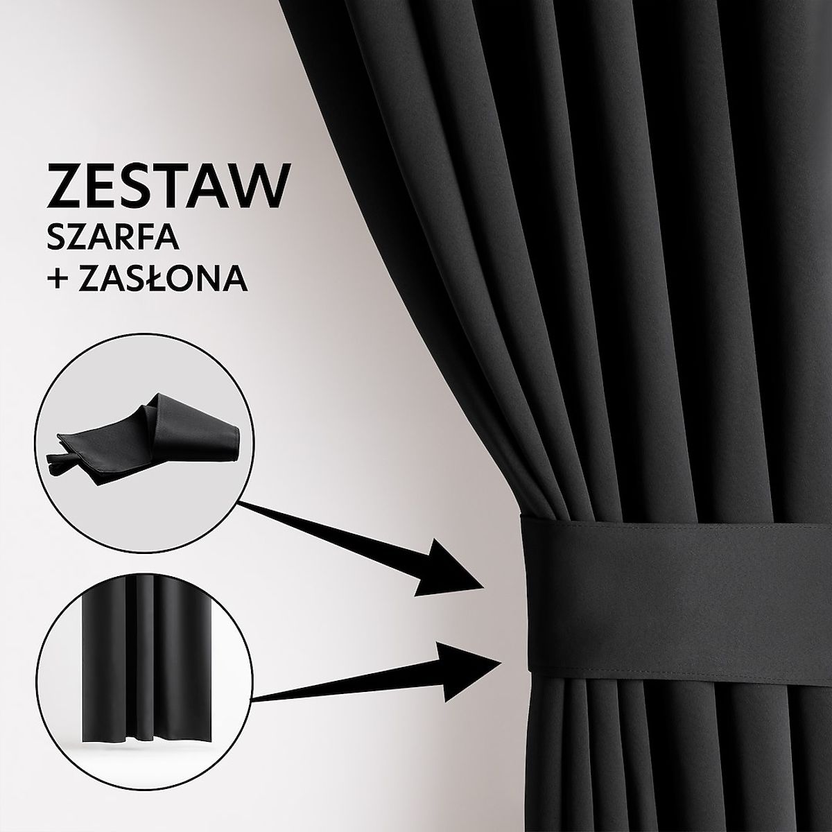 Lukahome.co.uk » Curtains and curtains / Curtains / RESTILO BLACKOUT Curtain Black Color, Tieback, Classic Style, Silver Eyelets, Material B