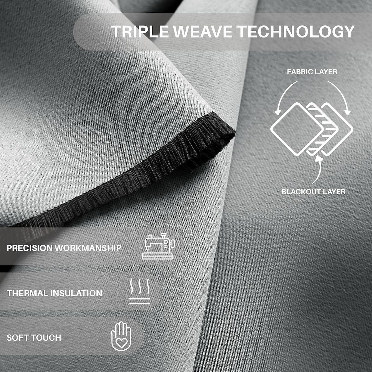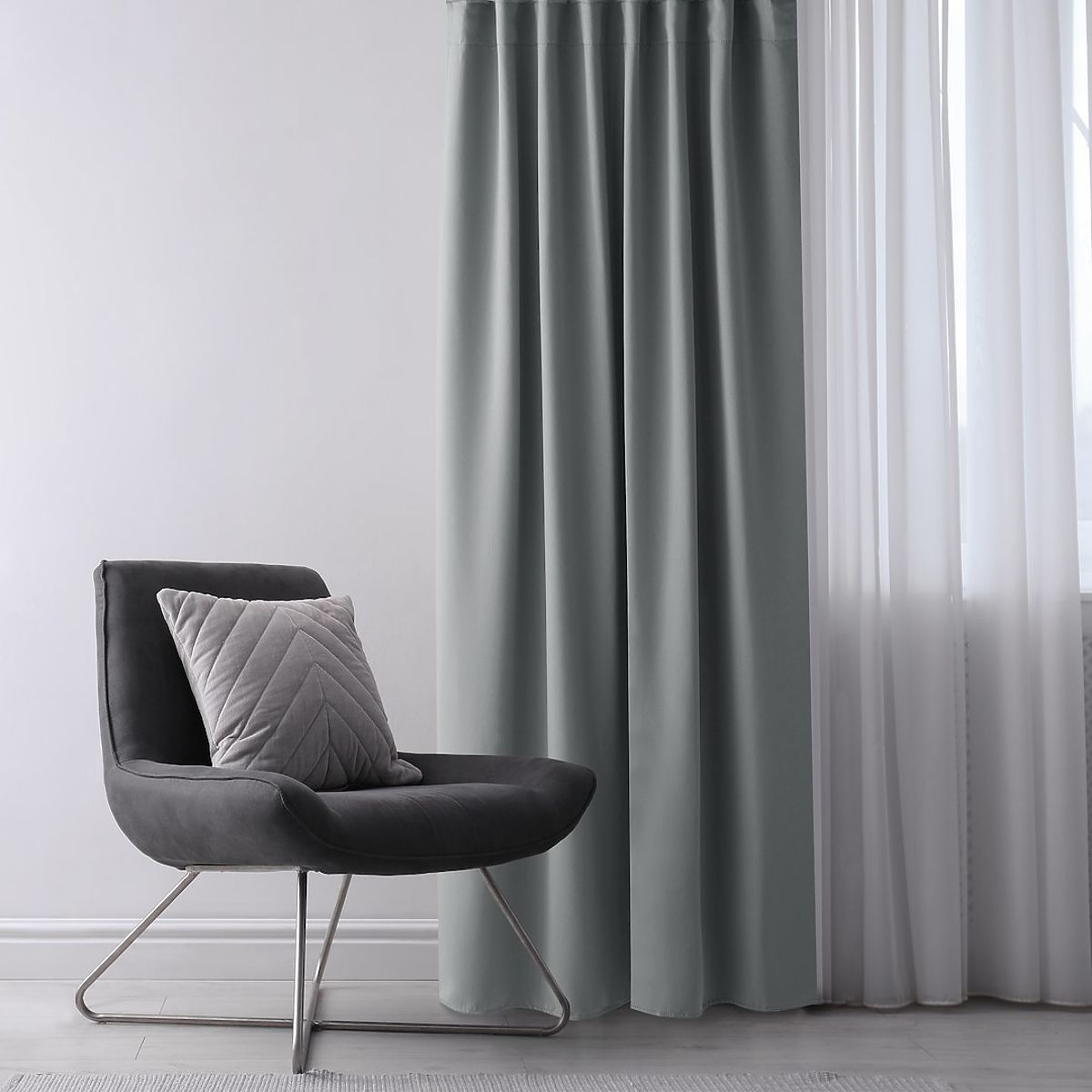 Grey blackout curtain with silver eyelets and a classic style. .. more