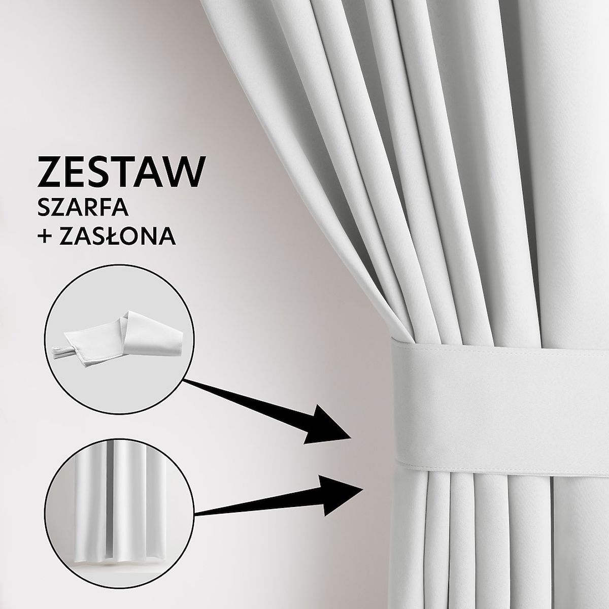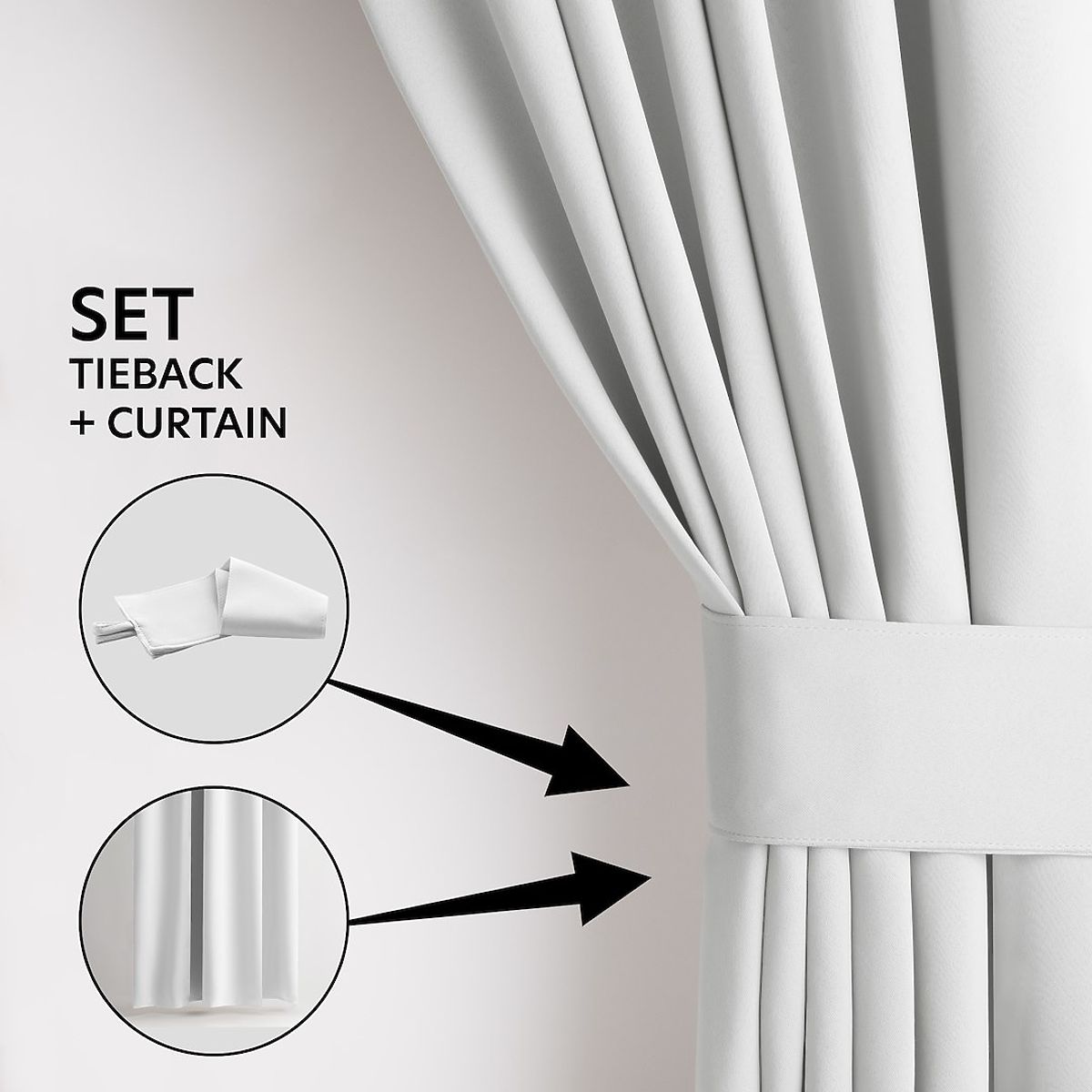White blackout curtain with silver rings and 80% blackout level. .. more