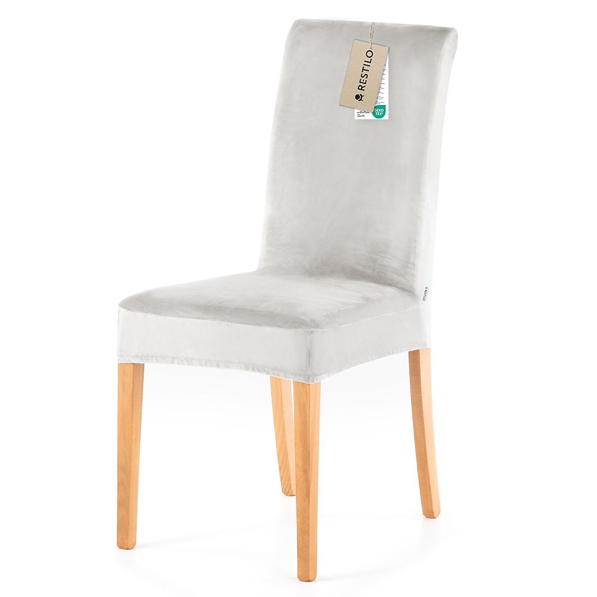 Gray velour sofa cover with elastic band, part of the Sento collection. .. more