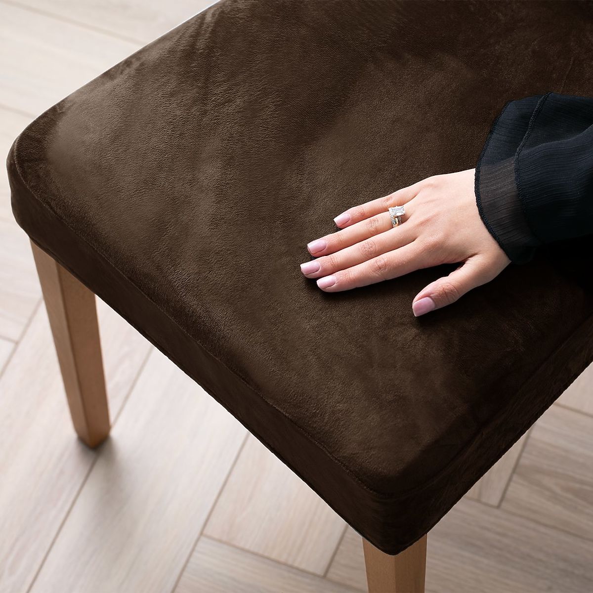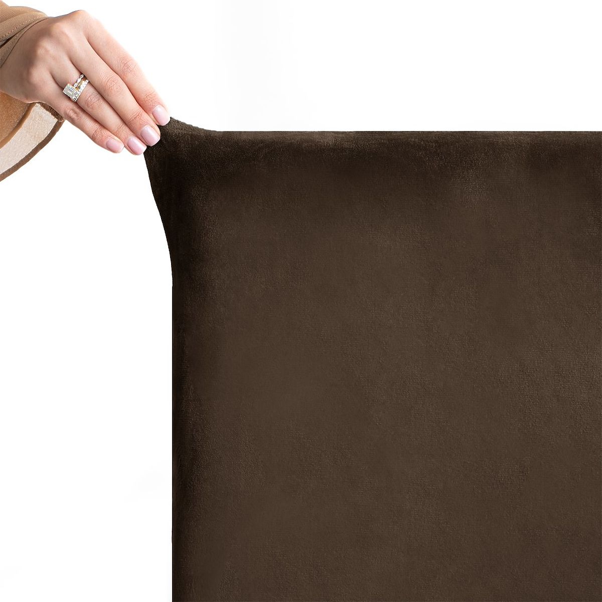 Dark brown velour sofa cover with classic style and elastic band. .. more