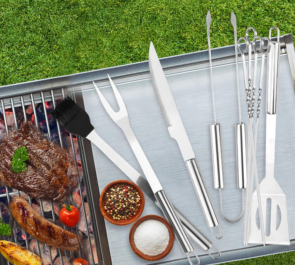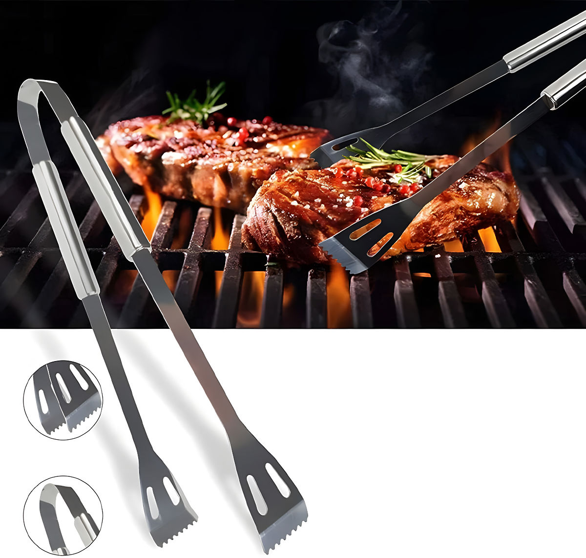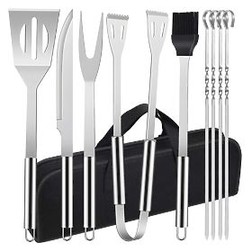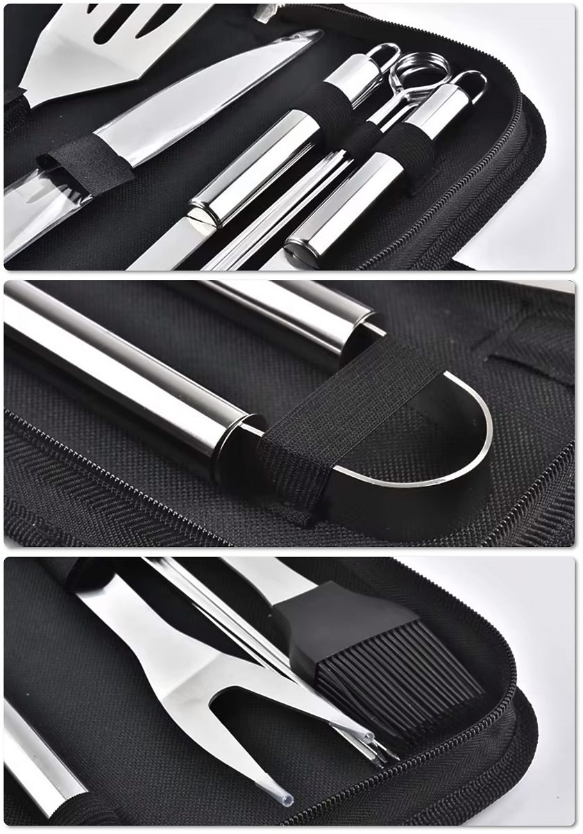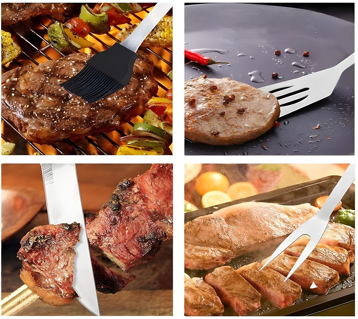 Essential stainless steel grill accessory set with practical storage case. .. more