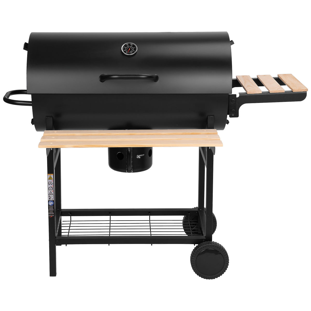 Garden Charcoal Grill 2 Grates Ash Pan BAREL WOOD Model: Barel wood | Shelves: two foldable wooden, shape: barrel ✨ Barel Wood – a robust charcoal grill for the whole family ✨ The Barel Wood charcoal grill is the ideal solution for those who want to enjoy the aroma of traditional grilling without the stress of burning food or lack of space on the grate. With its sturdy steel construction, large grilling area, and built-in thermometer, you can prepare perfect meat, vegetables, or fish every time. It is a grill that provides you with full control, convenience in use, and a great effect during family gatherings in the garden. ✍️ Specifications: Construction: powder-coated steel Two chrome, stainless steel grates Thermometer: built into the lid (up to 350°C) Ash pan: removable, metal, with draft control Ventilation holes: 4 pcs (2 on each side) Shelves: 2 wooden, foldable A pair of transport wheels Additional shelf: bottom grid for coal or accessories ✍️ Dimensions: Total height: 93 cm Total width: 111 cm Total depth: 64 cm Barrel dimensions: 76 x 38 x 40 cm Main grate: 70 x 35 cm Second grate: 67 x 13 cm Front shelf: 64 x 21.5 cm Side shelf: 36 x 22 cm Wheel diameter: 15 cm Bottom grid: 59 x 29 cm Additional information The colors shown are indicative - they may differ from the actual ones due to different monitor settings and the photo editing process. Actual dimensions may differ from those listed above. Error tolerance may be +/- 5%. Brand: Gockowiak EAN code: 5904512610113 Color: black + wood Height: 93 cm Width: 111 cm Total depth: 64 cm