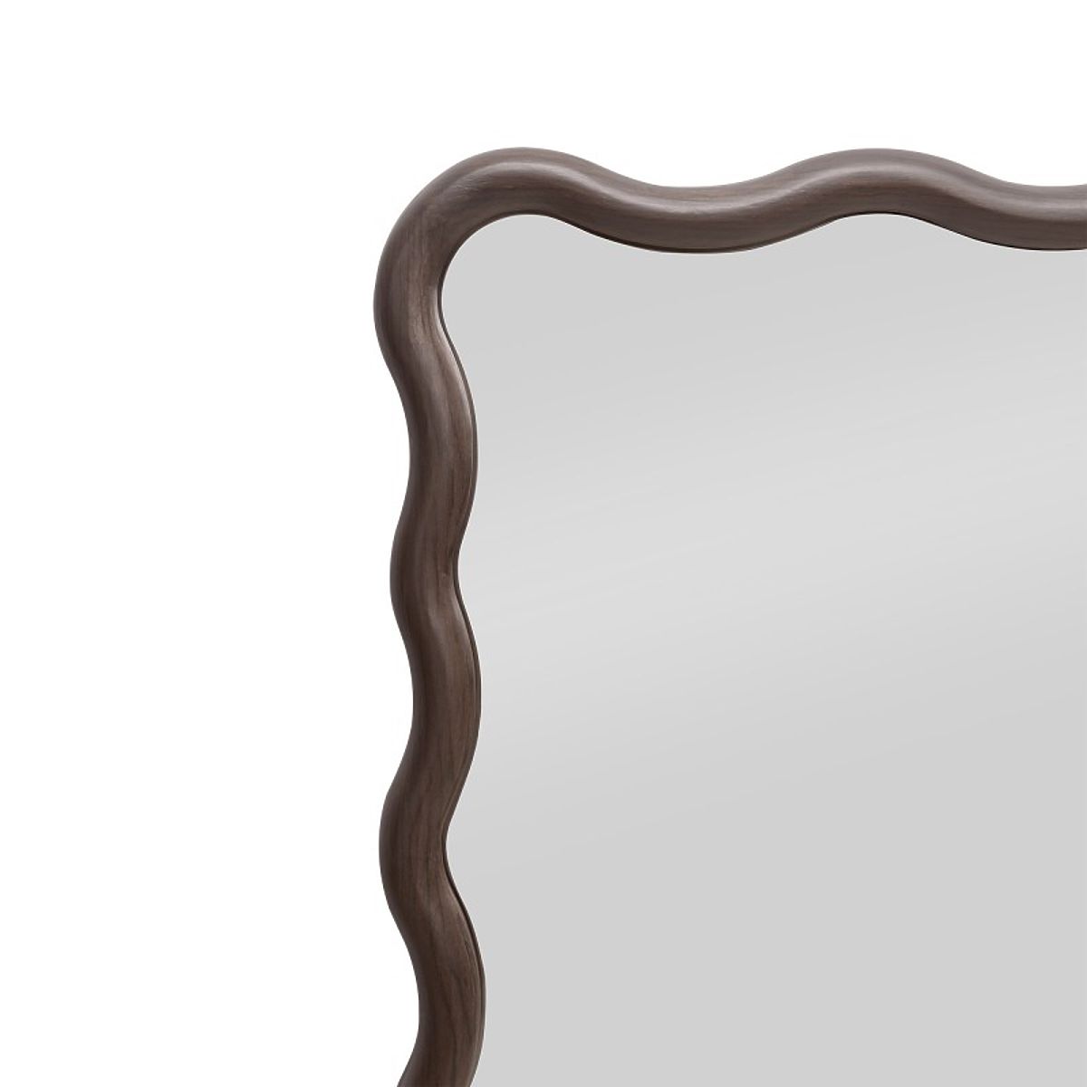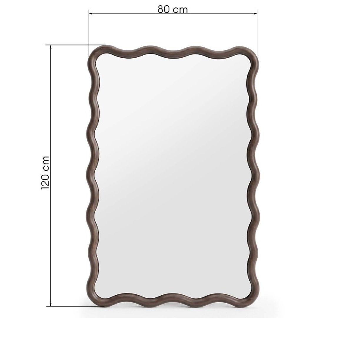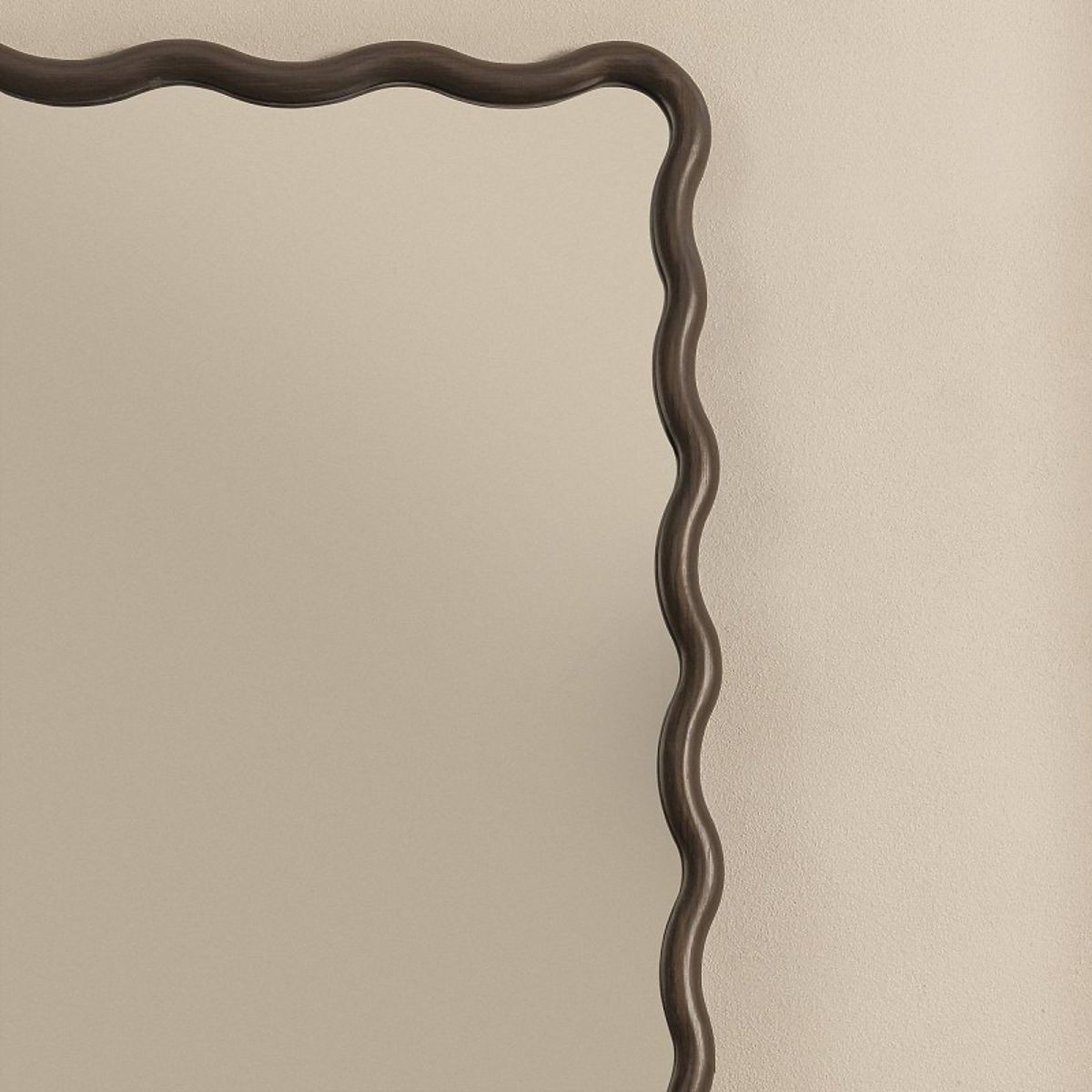 The Glimmer mirror captivates with its modern design! The wavy frame in a dark walnut shade adds elegance and character to any room.