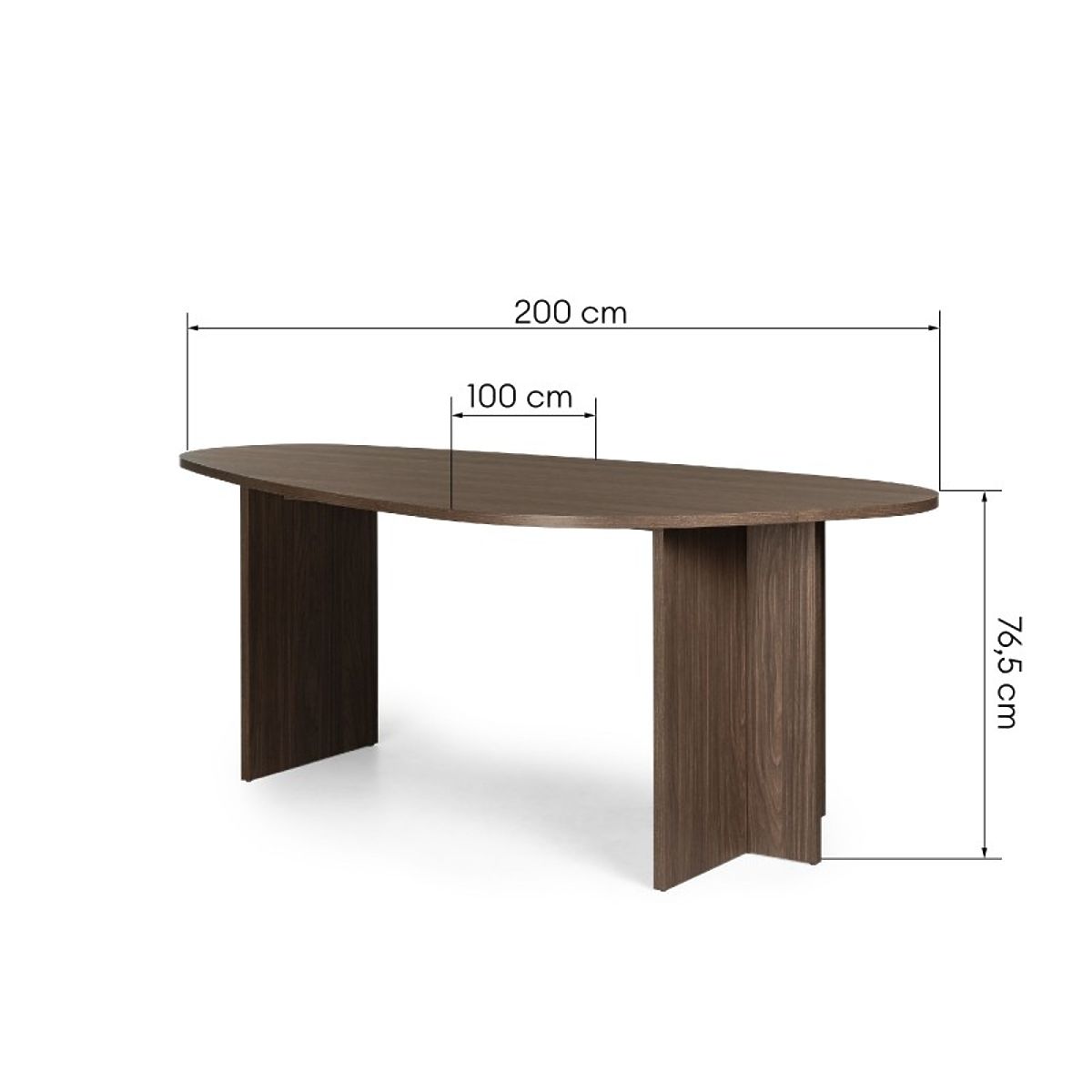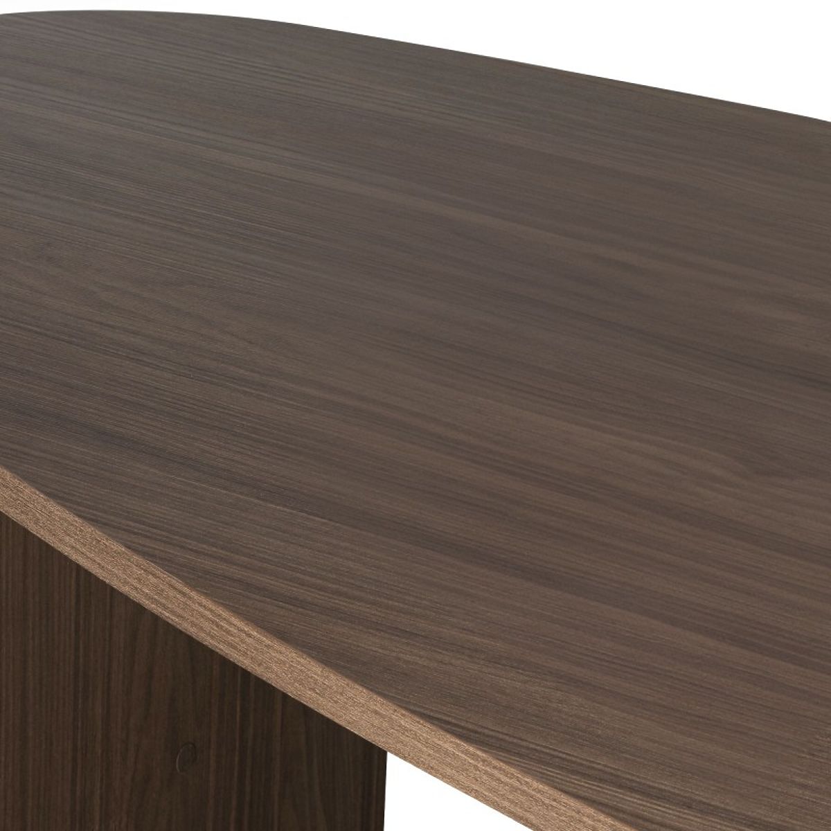 The Zeva dining table captivates with its unique, irregularly shaped top, adding a modern and artistic touch to the interior. Made from sturdy laminated board in Lincoln Walnut shade, it offers a comfortable space for up to ten people, combining functionality with bold design.