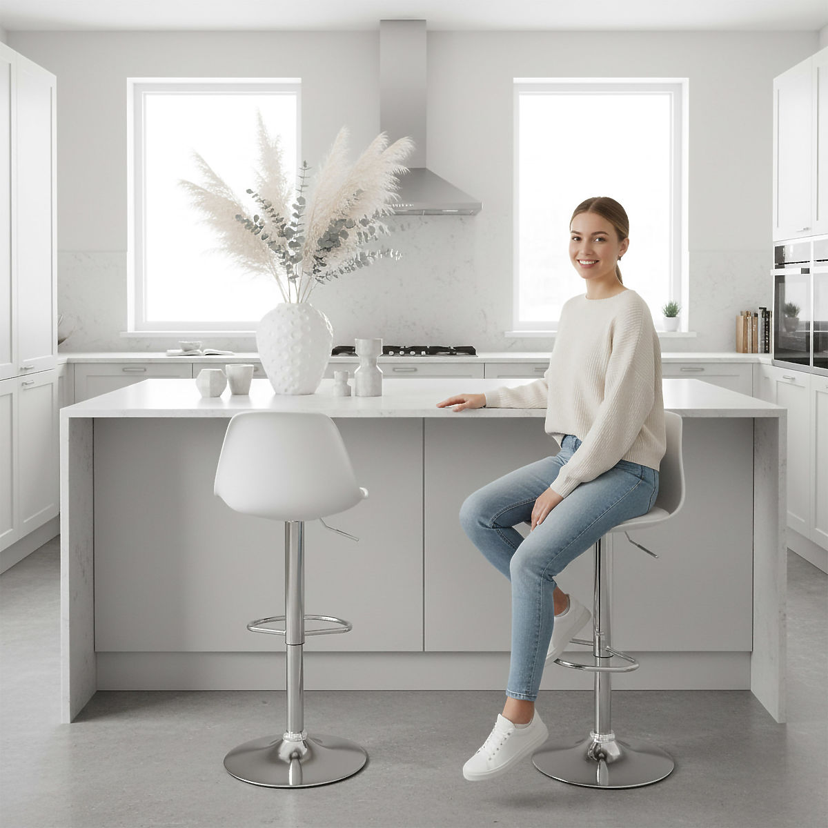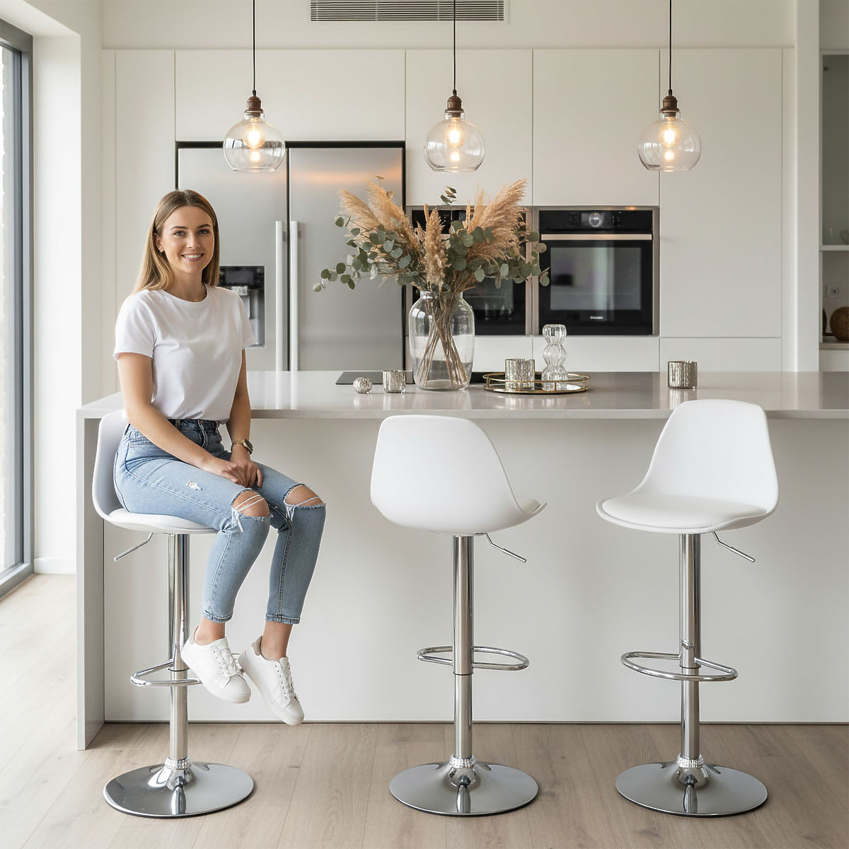 The Ricardo bar stool is the perfect combination of style and practicality. Its modern design brings elegance to any interior, and features like a swivel seat and adjustable height ensure comfort during use. It fits perfectly in the kitchen, suitable for use at counters, bars, or kitchen islands. The stable, chrome-plated construction and easy maintenance ensure it meets the expectations of even the most demanding individuals.