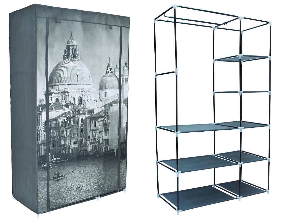 Lightweight textile wardrobes offer a simple and economical solution for clothing storage. These wardrobes feature a metal frame with plastic connectors, are easy and quick to assemble, and are available in many fashionable colors and patterns. The textile wardrobe is also suitable for people who frequently change residences - it can be folded in minutes. Thanks to the zippers on the front, individual sections of the wardrobe can be opened and closed independently.