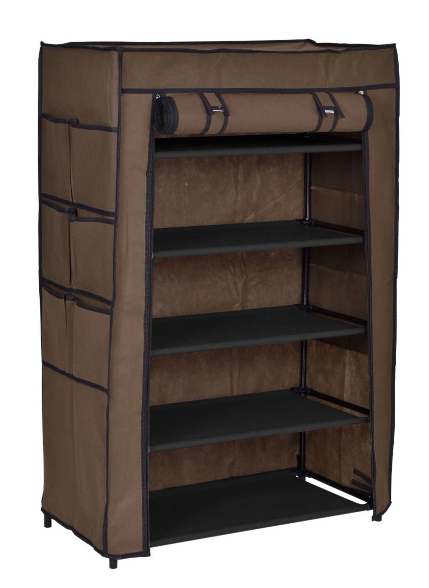 Textile Shoe Cabinet Mona Dark Brown
