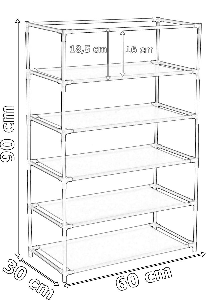 A shoe shelf, rack made from steel frames forming its structure. A breathable material of good quality is fitted onto the frame. It is easy to maintain and practical, ideal for storing caps, scarves, gloves, shoes, or other small items. Lightweight and sturdy construction, which you can fold, move, or rearrange at any time.